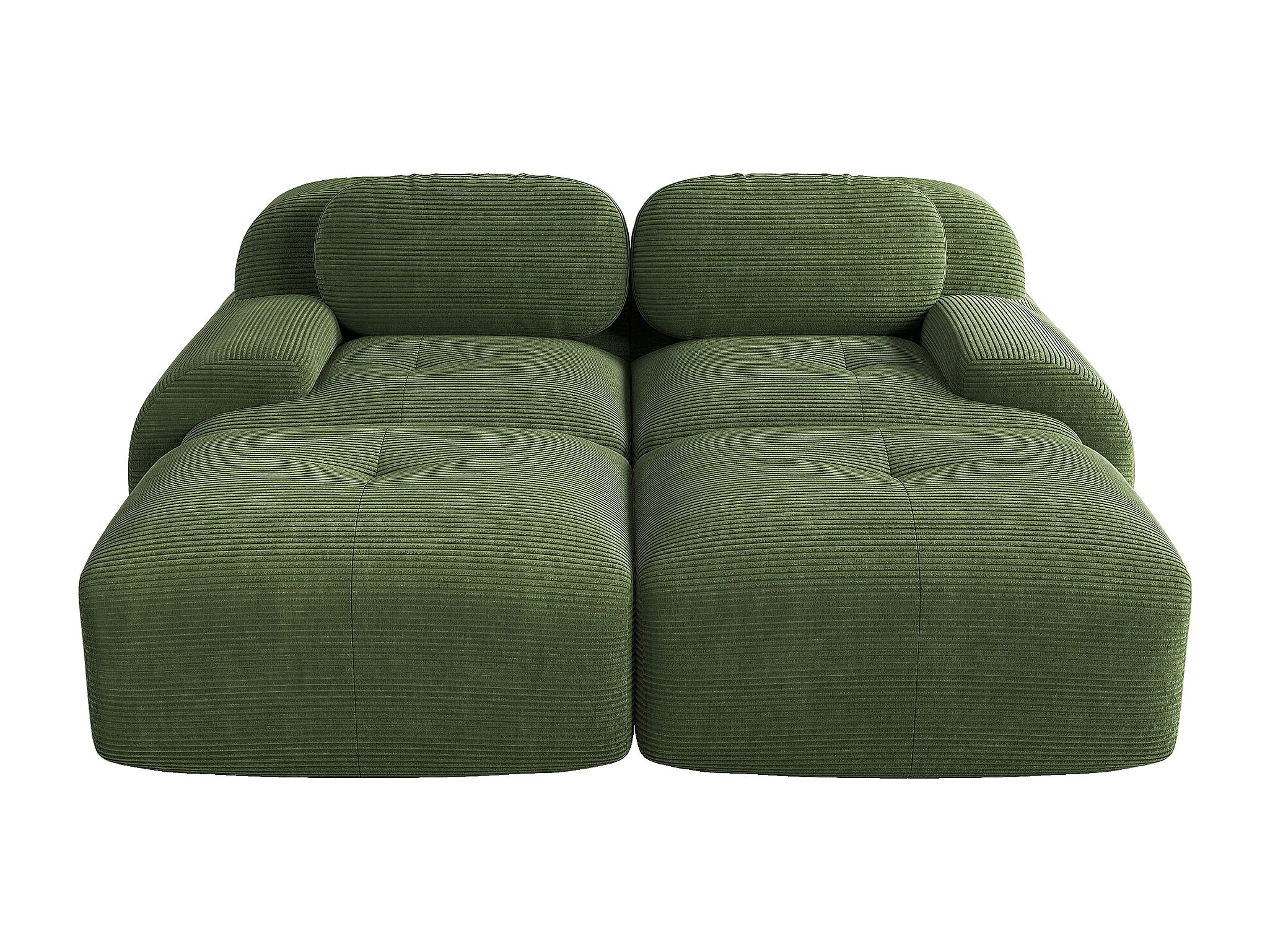 2-zits bank van ribfluweel met armleuningen en poef, groen - geschikt voor woonkamer en slaapkamer