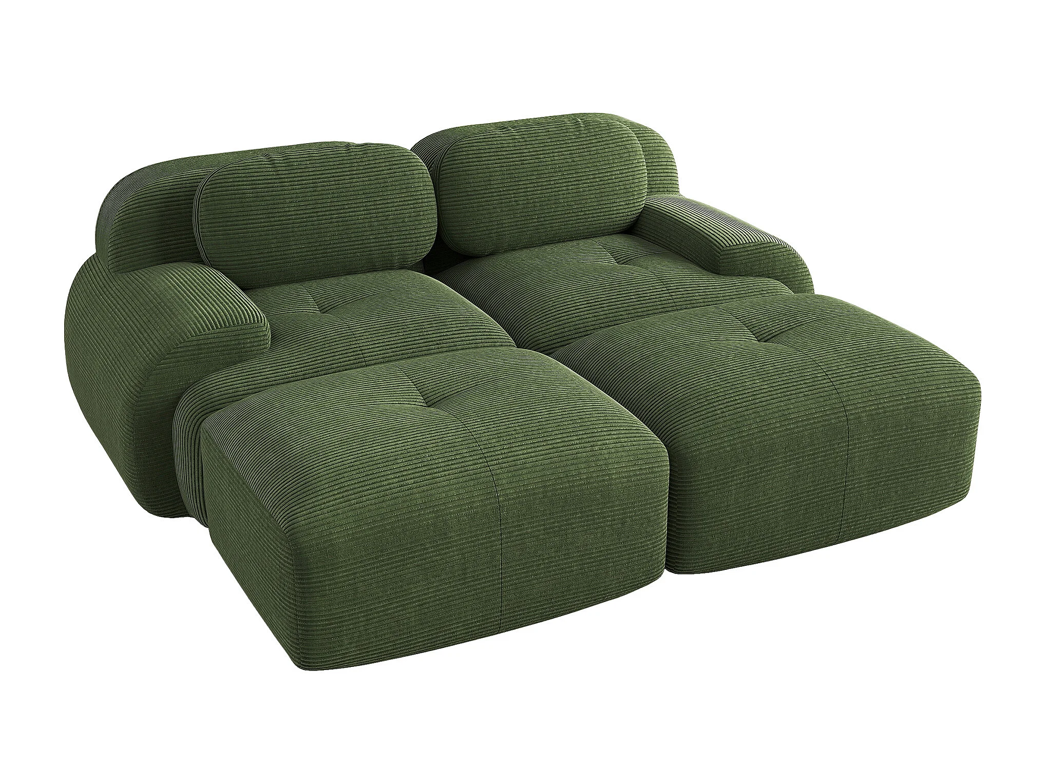 2-zits corduroy bank - Kussens en 2 voetenbankjes - Groen