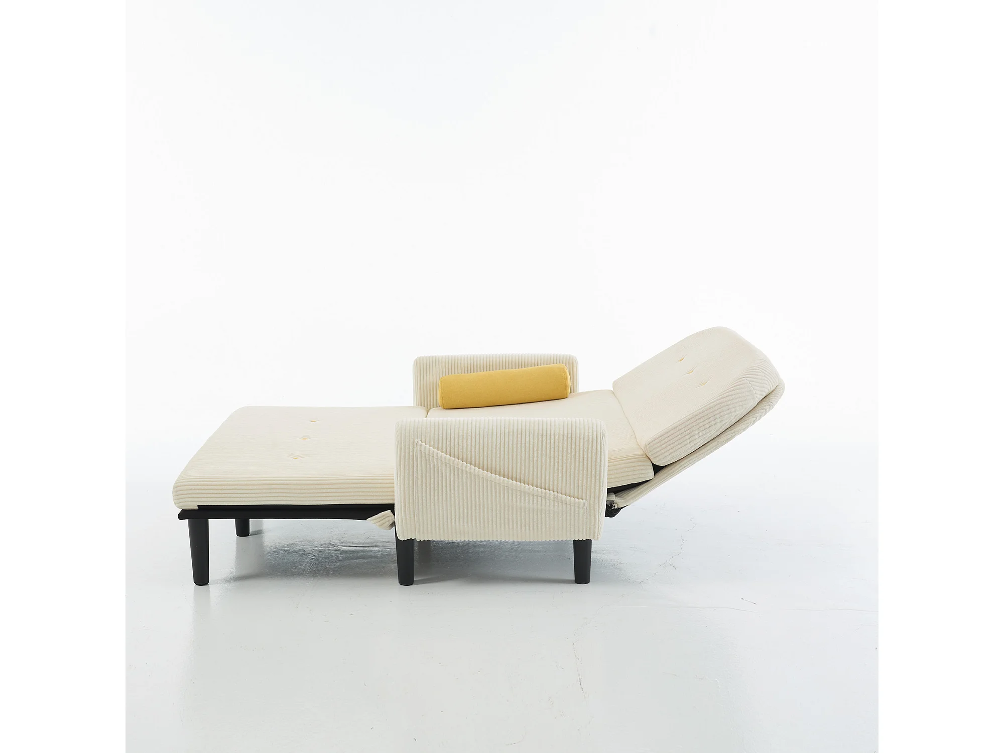 2-zits corduroy slaapbank, multifunctioneel met opbergruimte, ivoor (133,5x77x85 cm)