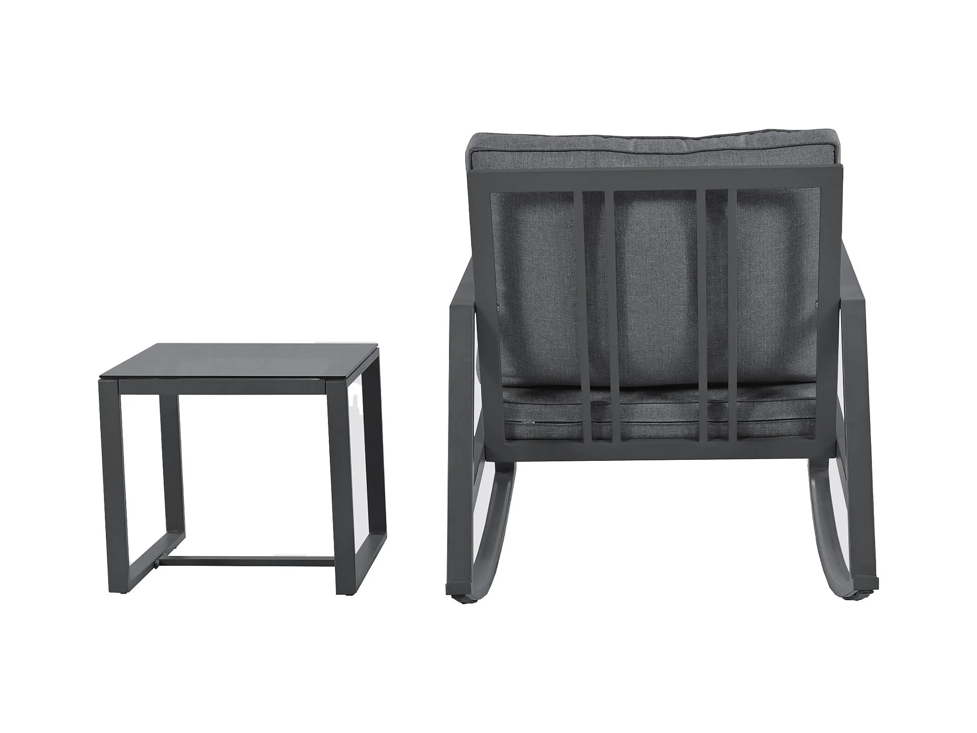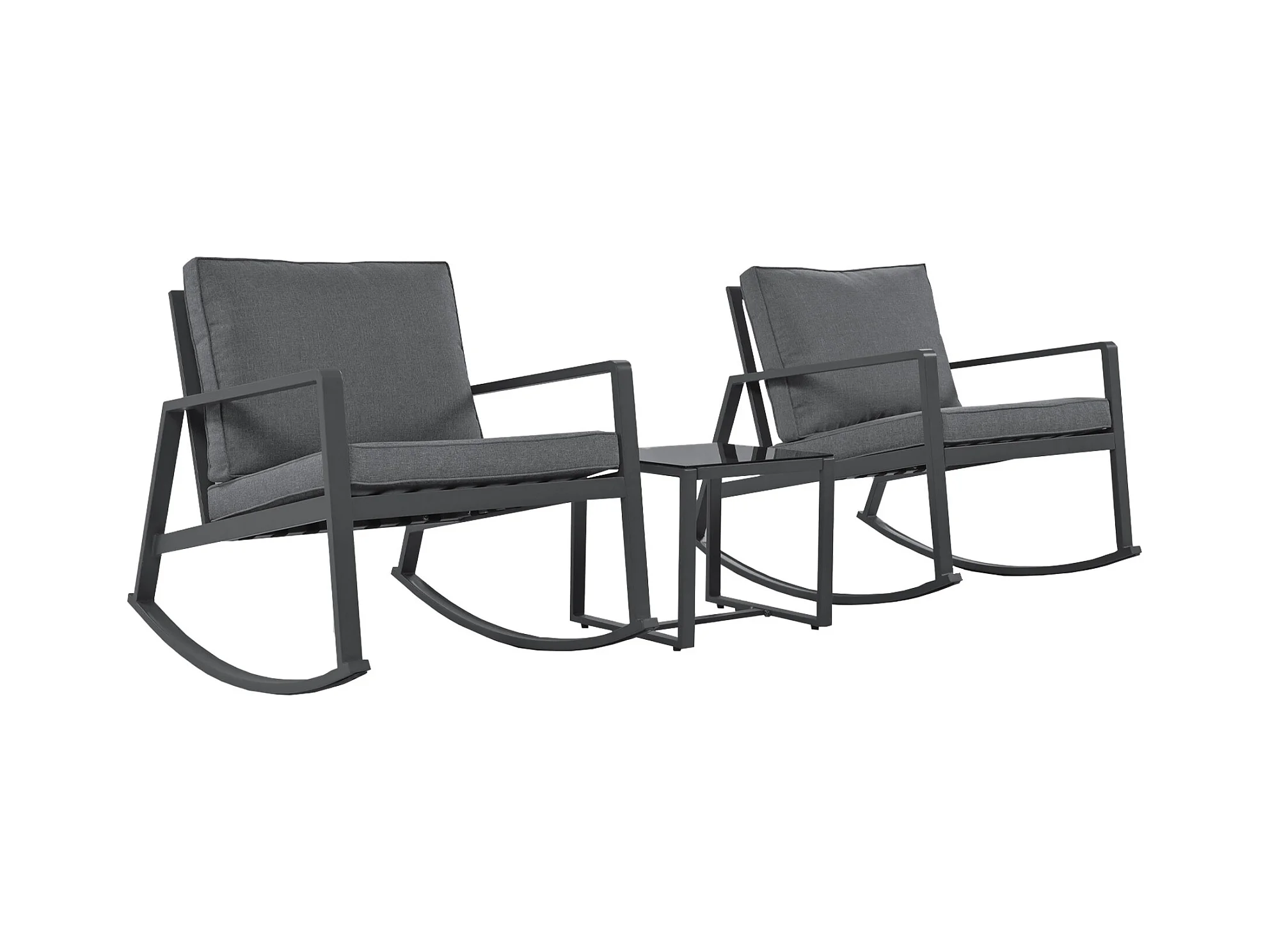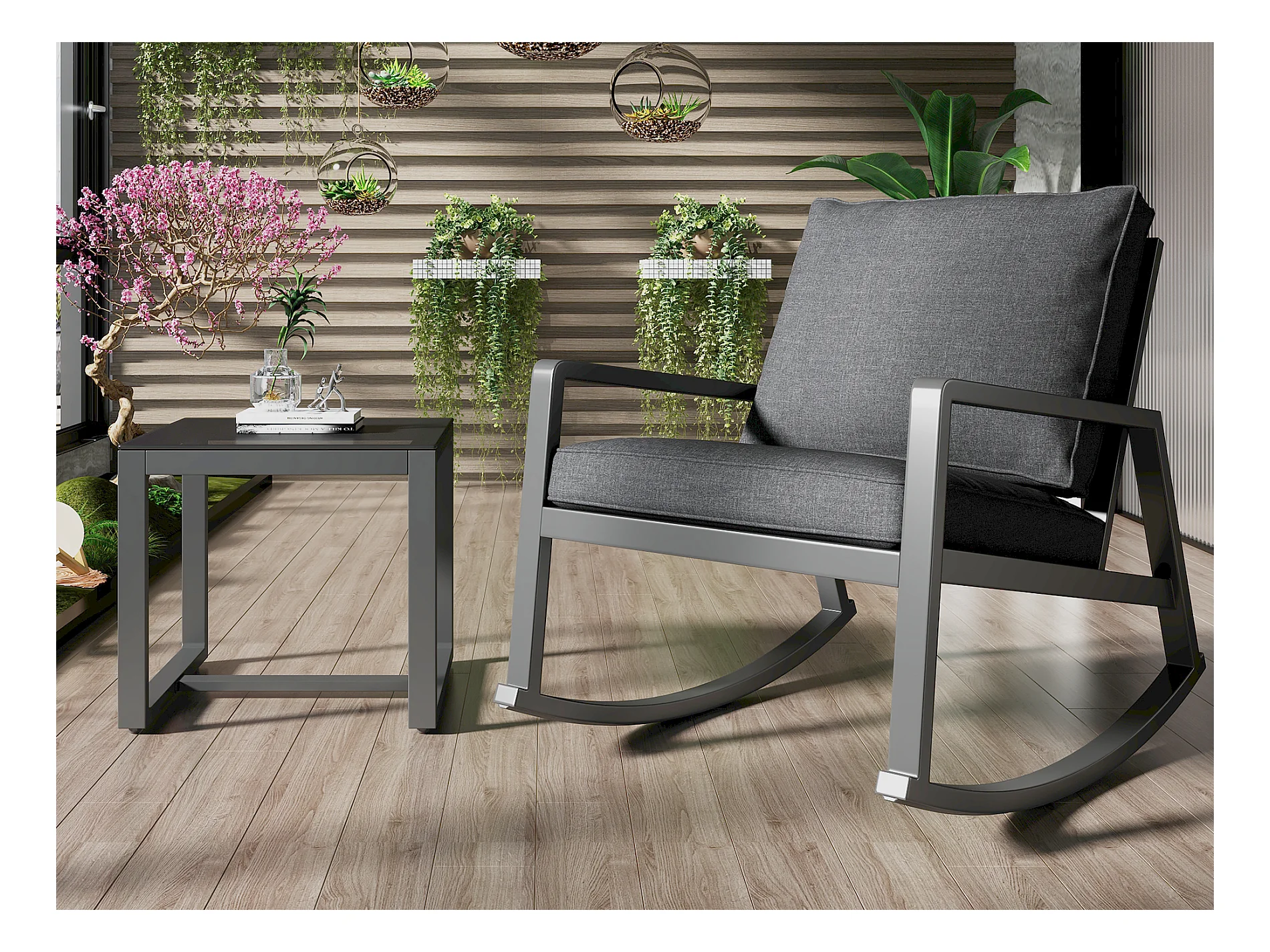 2-zits metalen tuinmeubelset: 2 schommelstoelen en 1 glazen salontafel - 8 cm gevulde kussens - Grijs