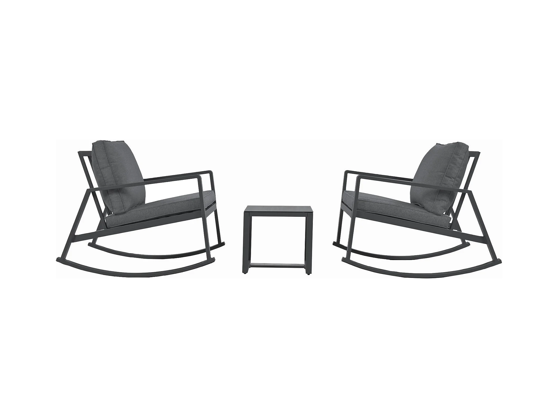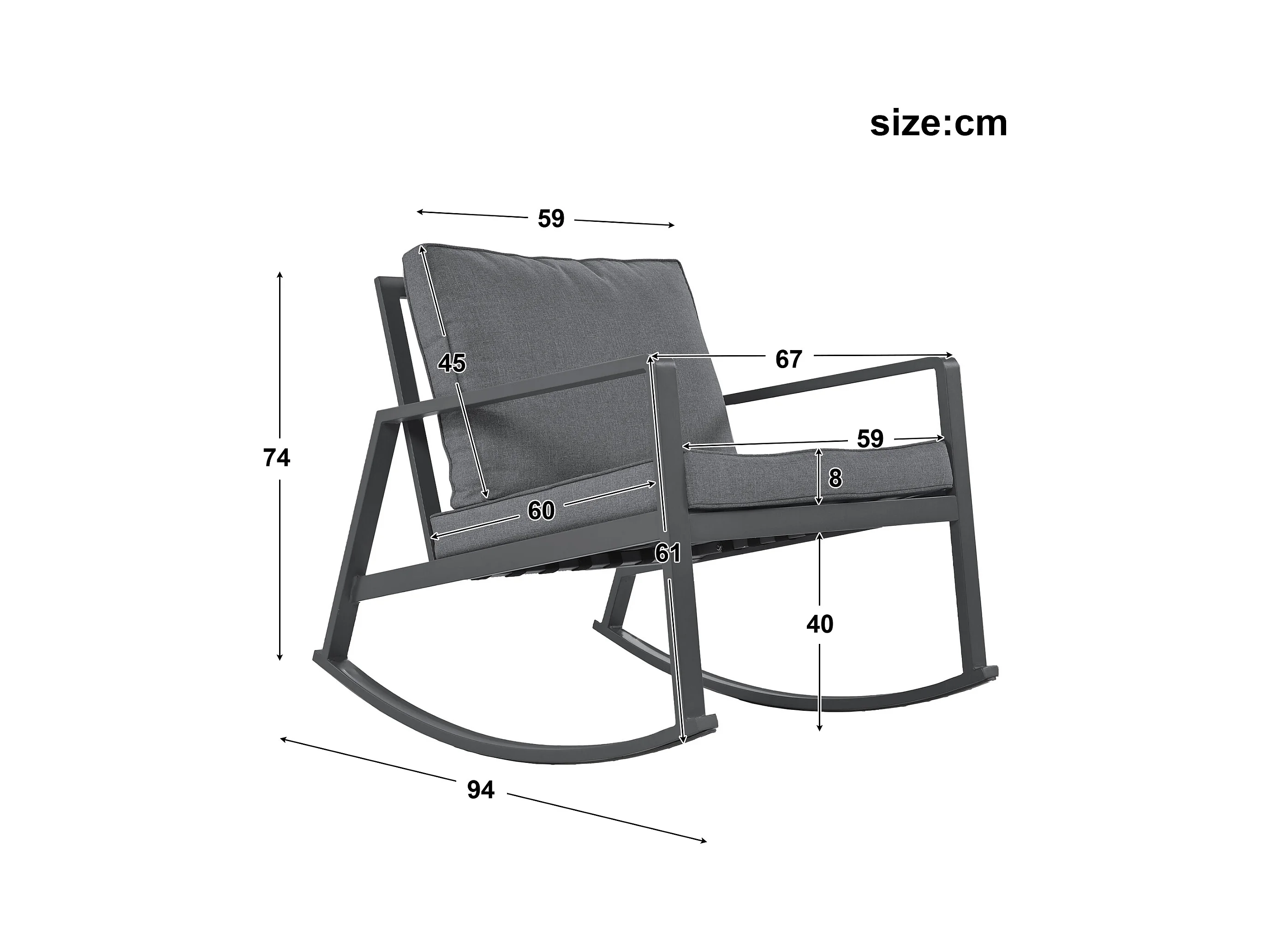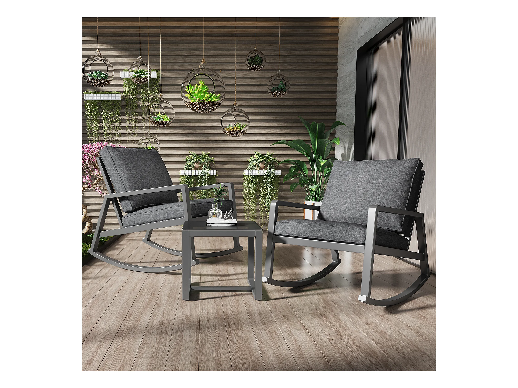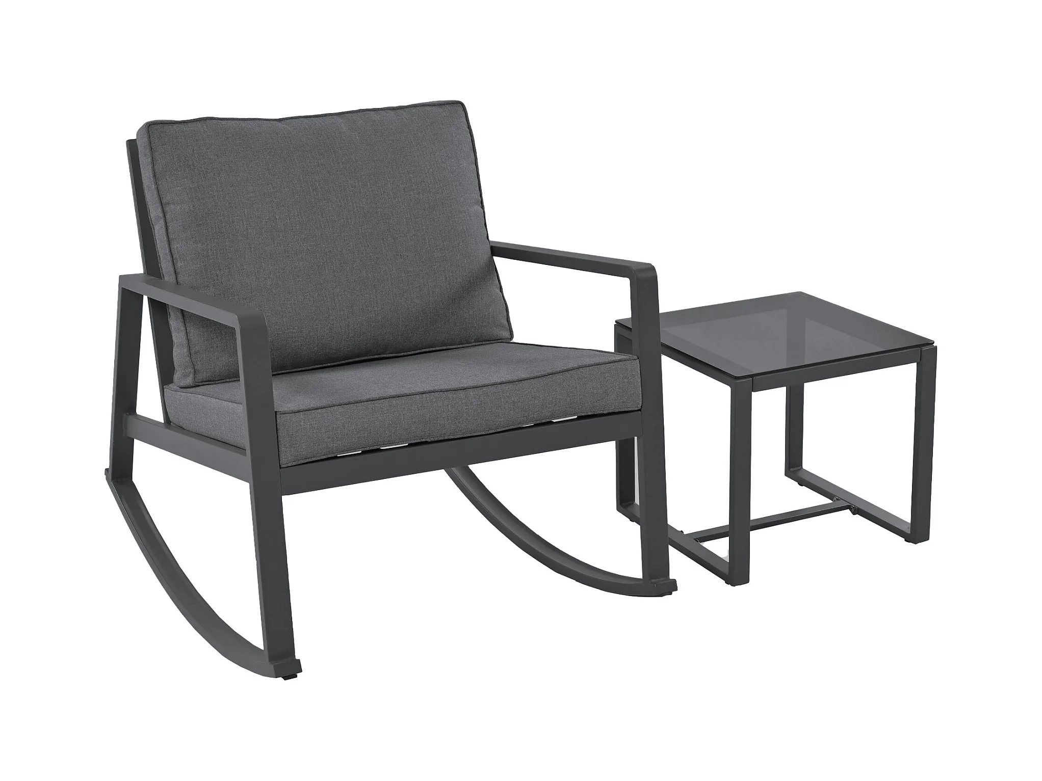 2-zits metalen tuinmeubelset: 2 schommelstoelen en 1 glazen salontafel - 8 cm gevulde kussens - Grijs