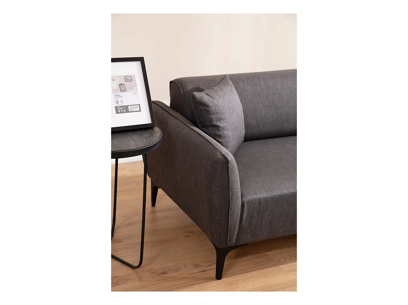 Moderne 3-zits rechte bank zachte antraciet stof zwart metalen poten Kustone 239 cm