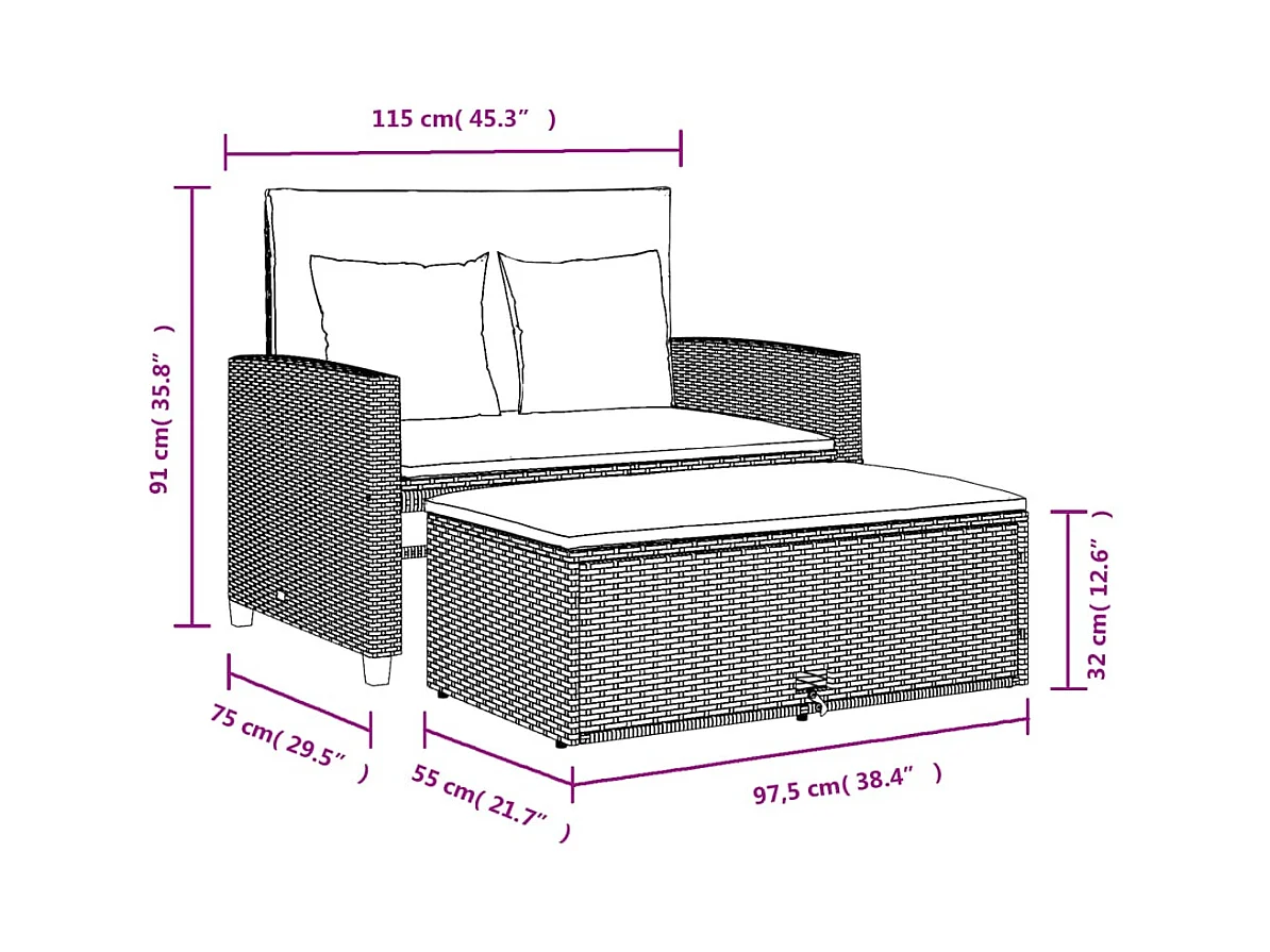 2-zits tuinbank met zwarte geweven hars- en acaciakussens