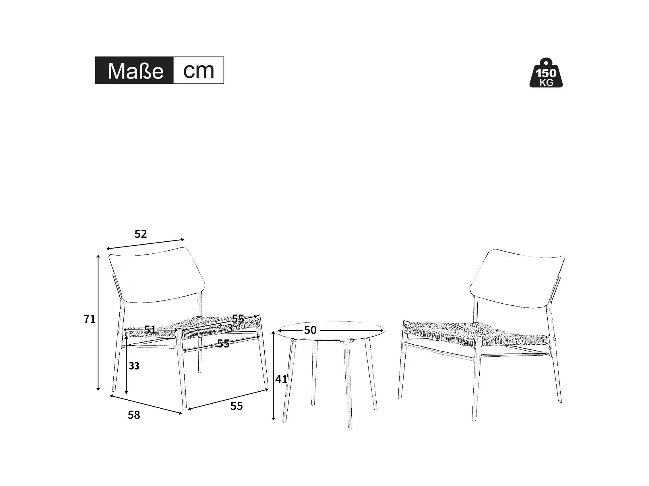 2-zits tuinmeubelen in aluminium en PE rotan - 2 stoelen en een tafel - wit