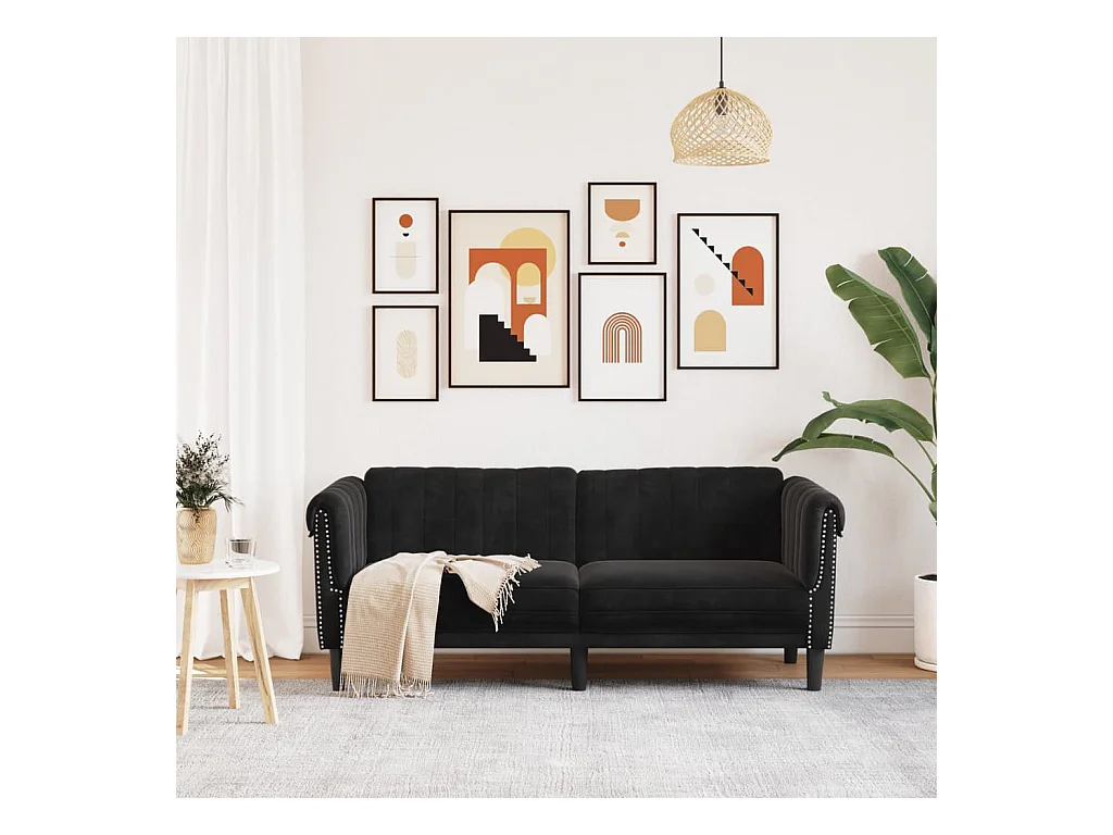 2-zitsbank fluweel zwart