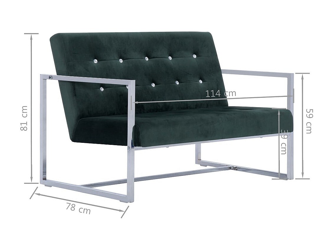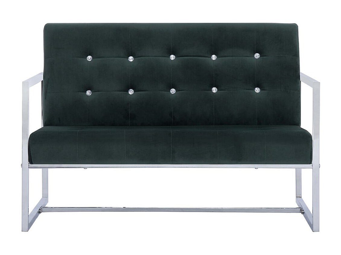 2-zitsbank met armleuningen Donkergroen Chroom en fluweel