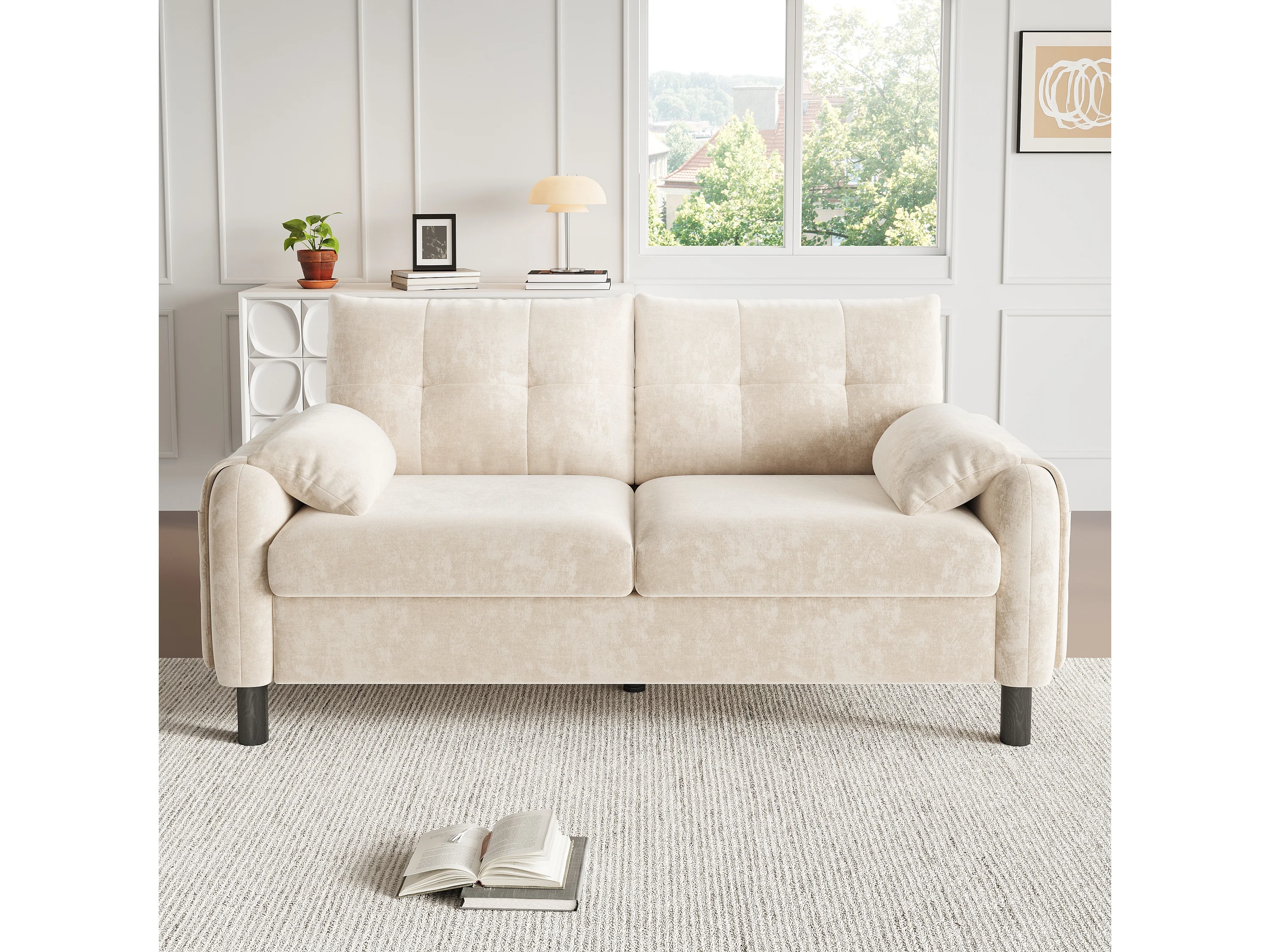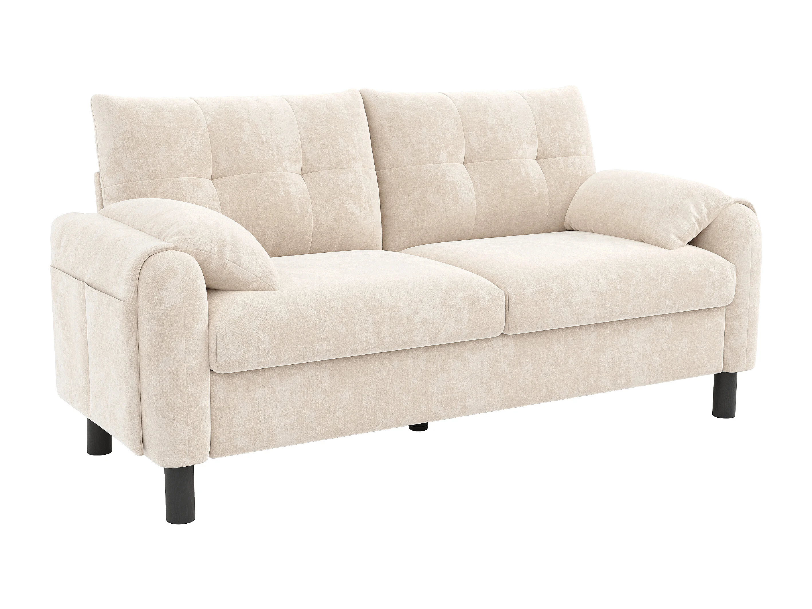 2-zitsbank met gestoffeerde rugleuning - Rechte bank met zijzakken en armleuningen - beige chenille