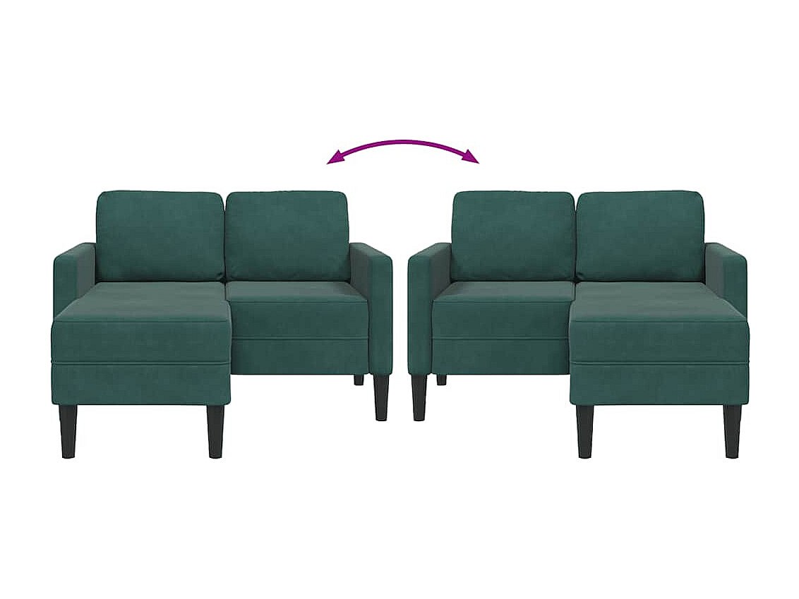 2-zitsbank met L-vormige chaise longue in donkergroen fluweel 125 cm