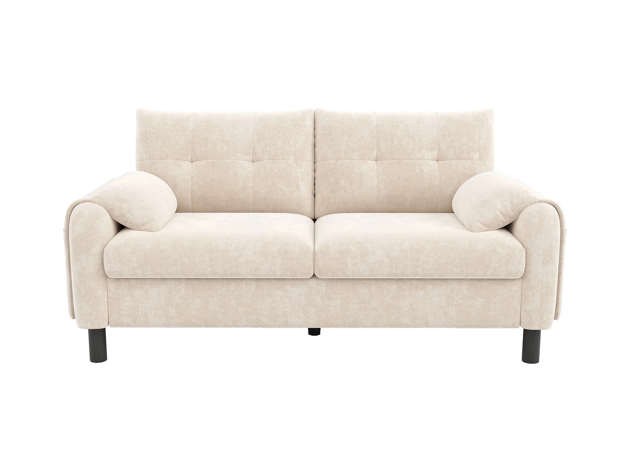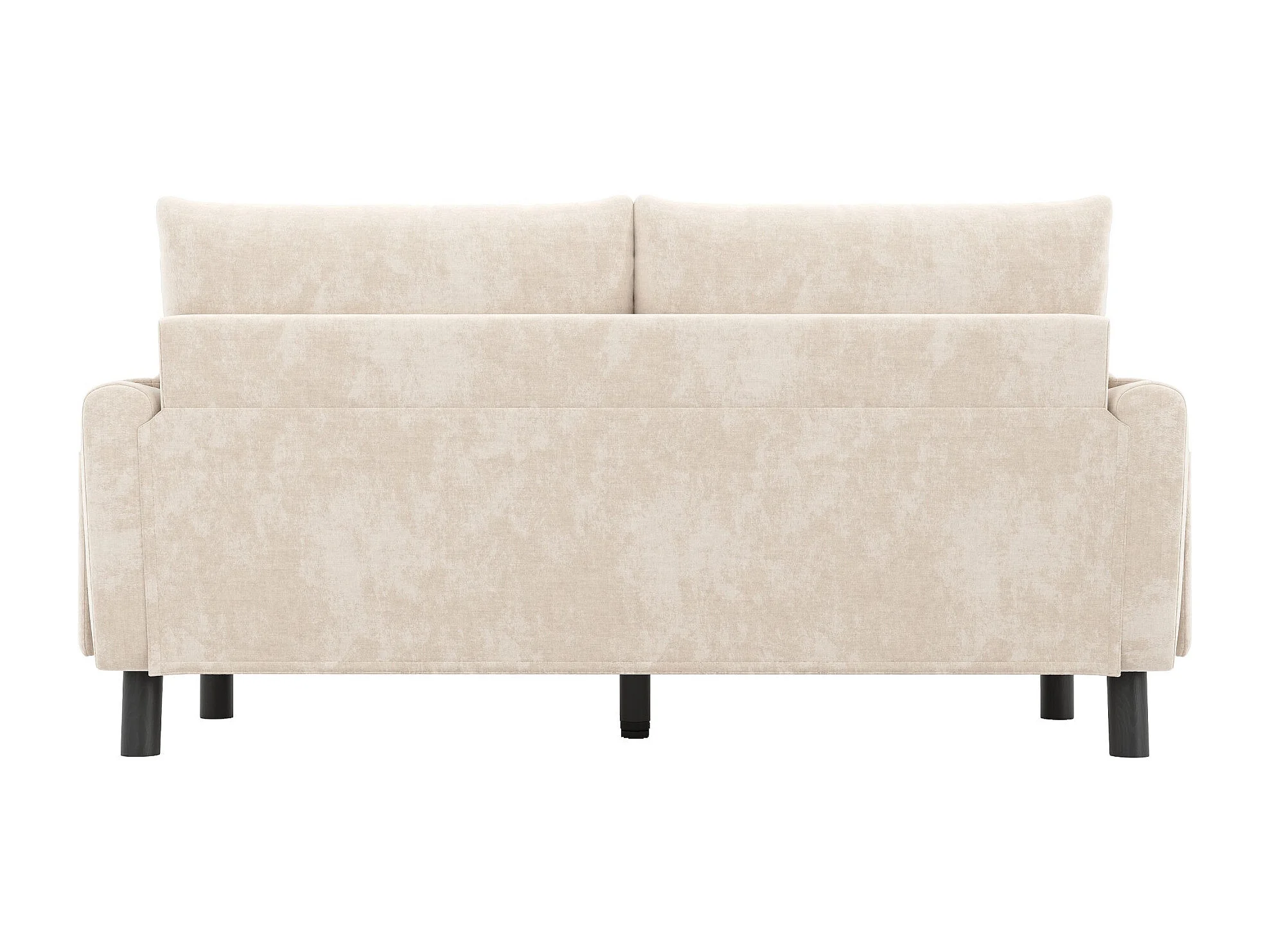 2-zitsbank met zijvakken en armleuningen, gewatteerde rugleuning - beige chenille