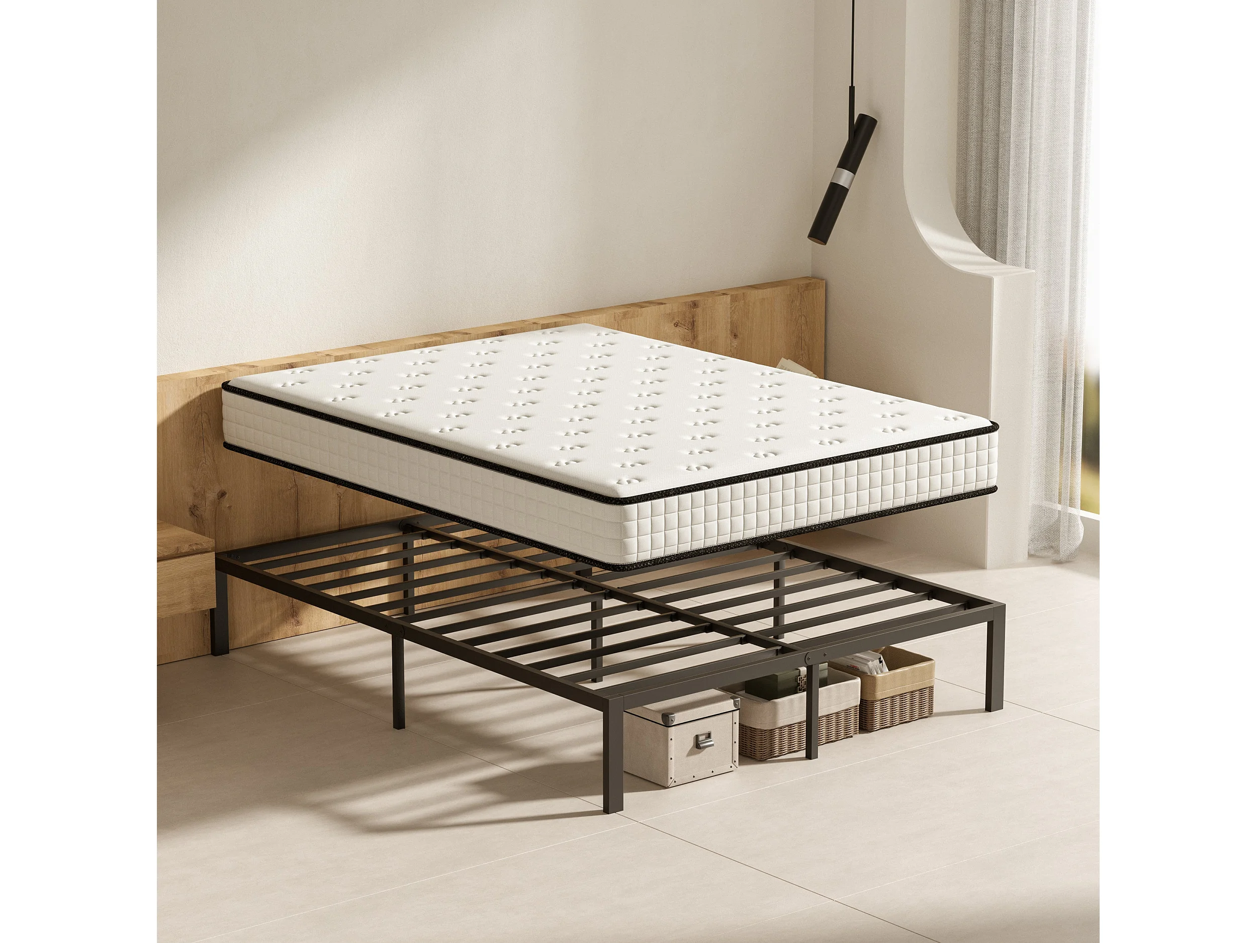 22 cm dikke schuimmatras + metalen bedframe 140x190 cm
