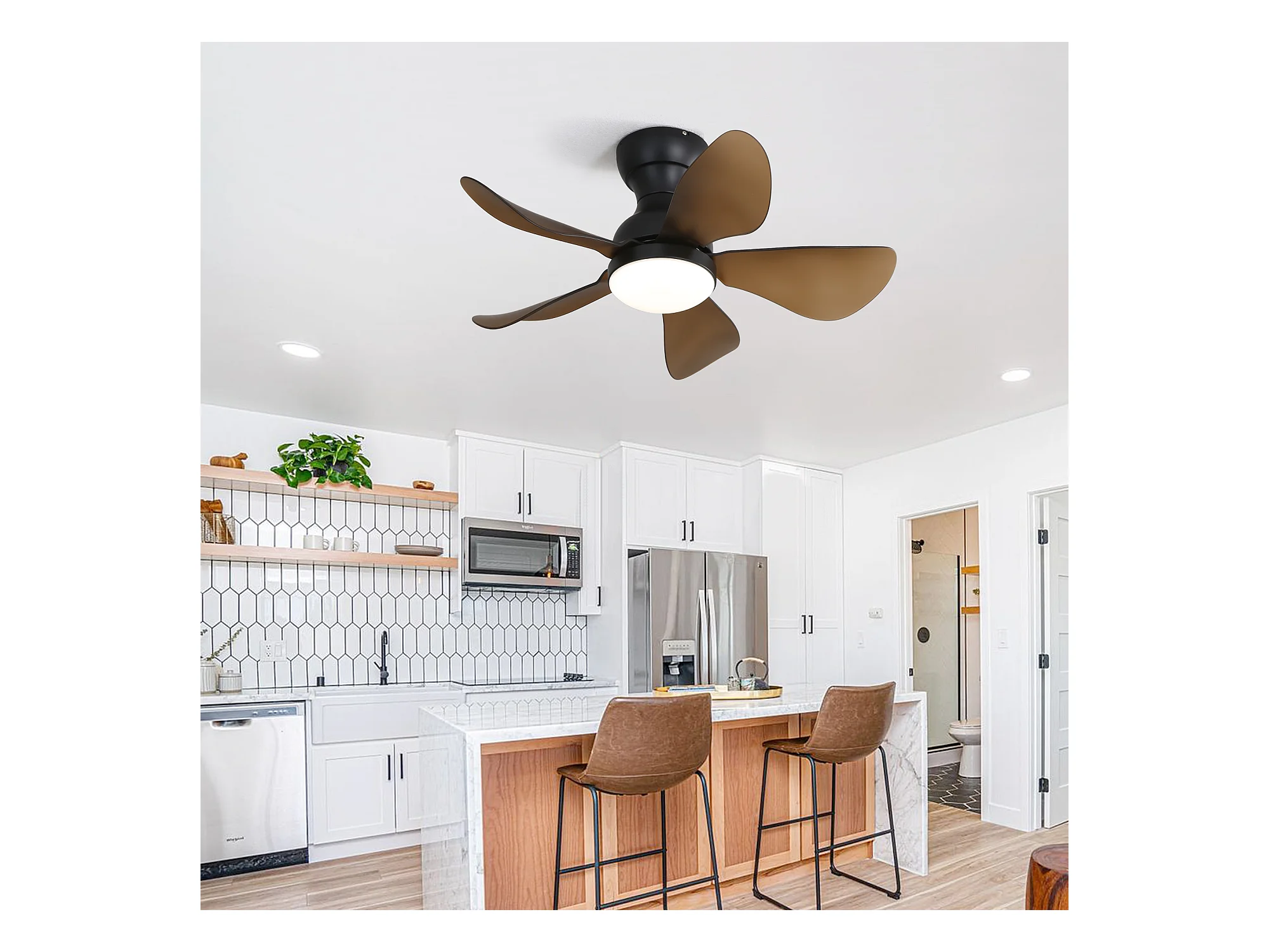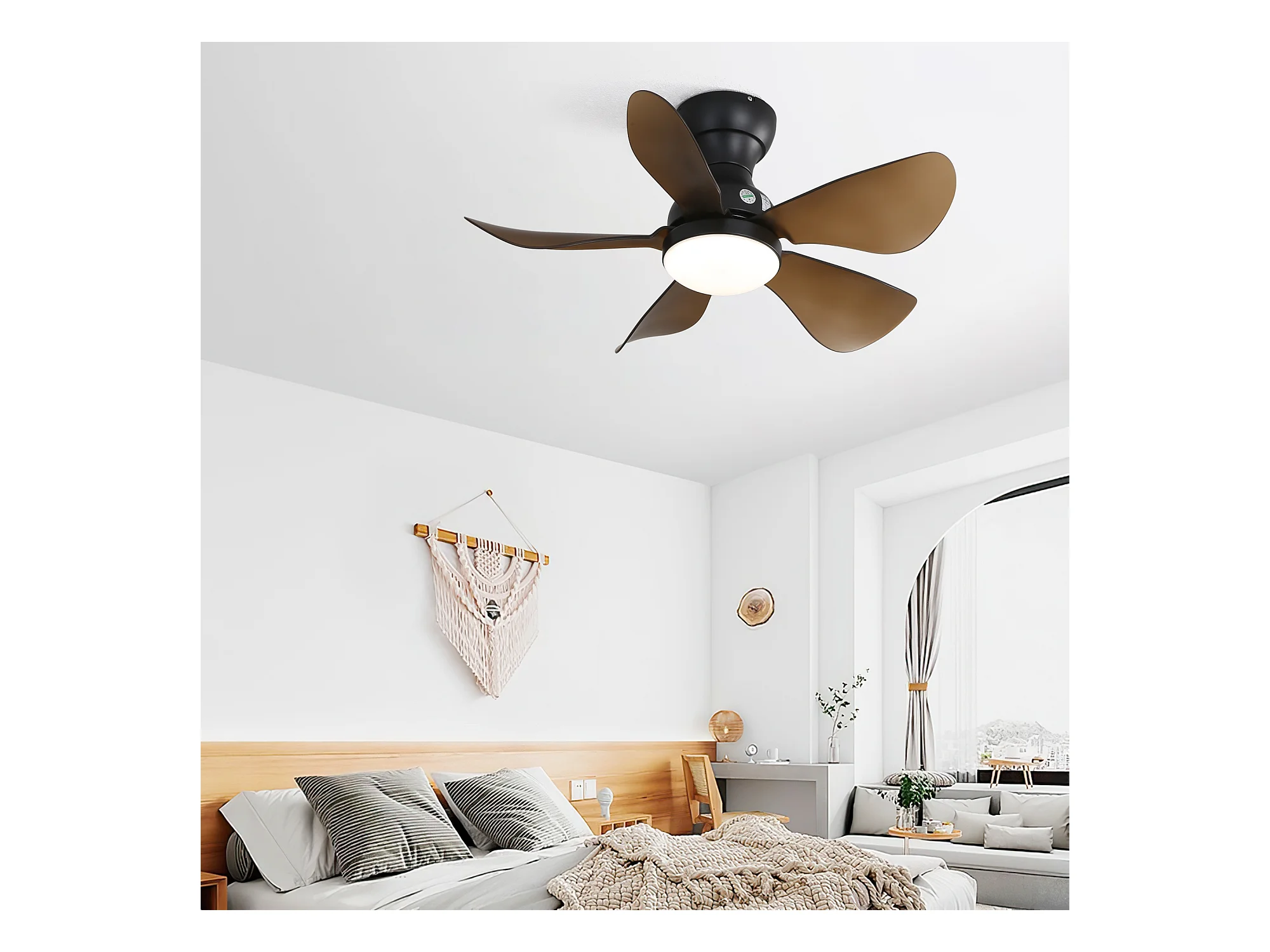 29 inch platte plafondventilator, 5 ABS-bladen, 18W dimbare LED, omkeerbare DC-motor, 1/4/8 uur timer, zwart (73,66 x 73,66 x 29,97 cm)