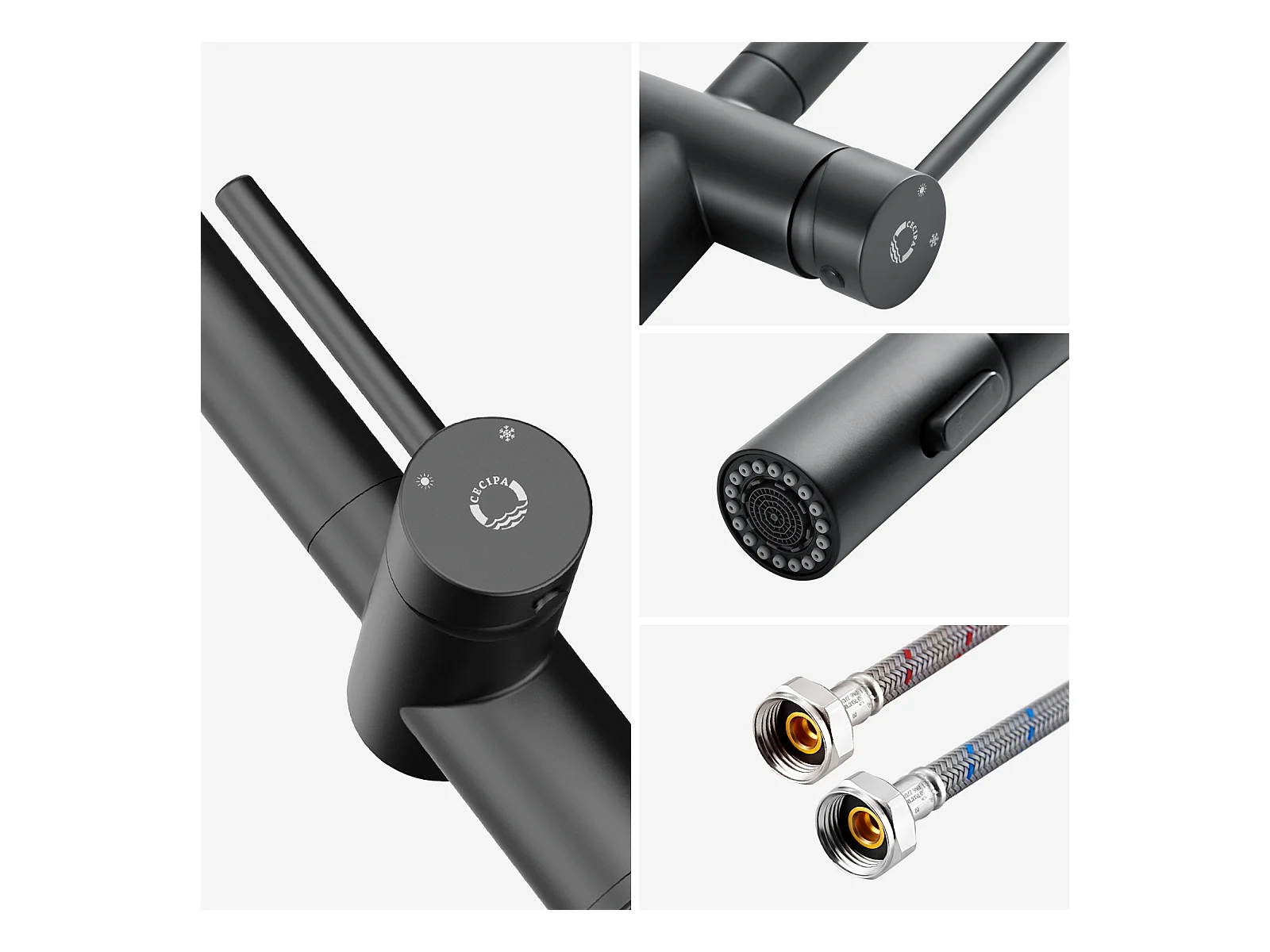 Cecipa max Zwarte keukenmengkraan met uittrekbare spray RVS aanrechtkraan 2 waterafvoermodi, EU-model