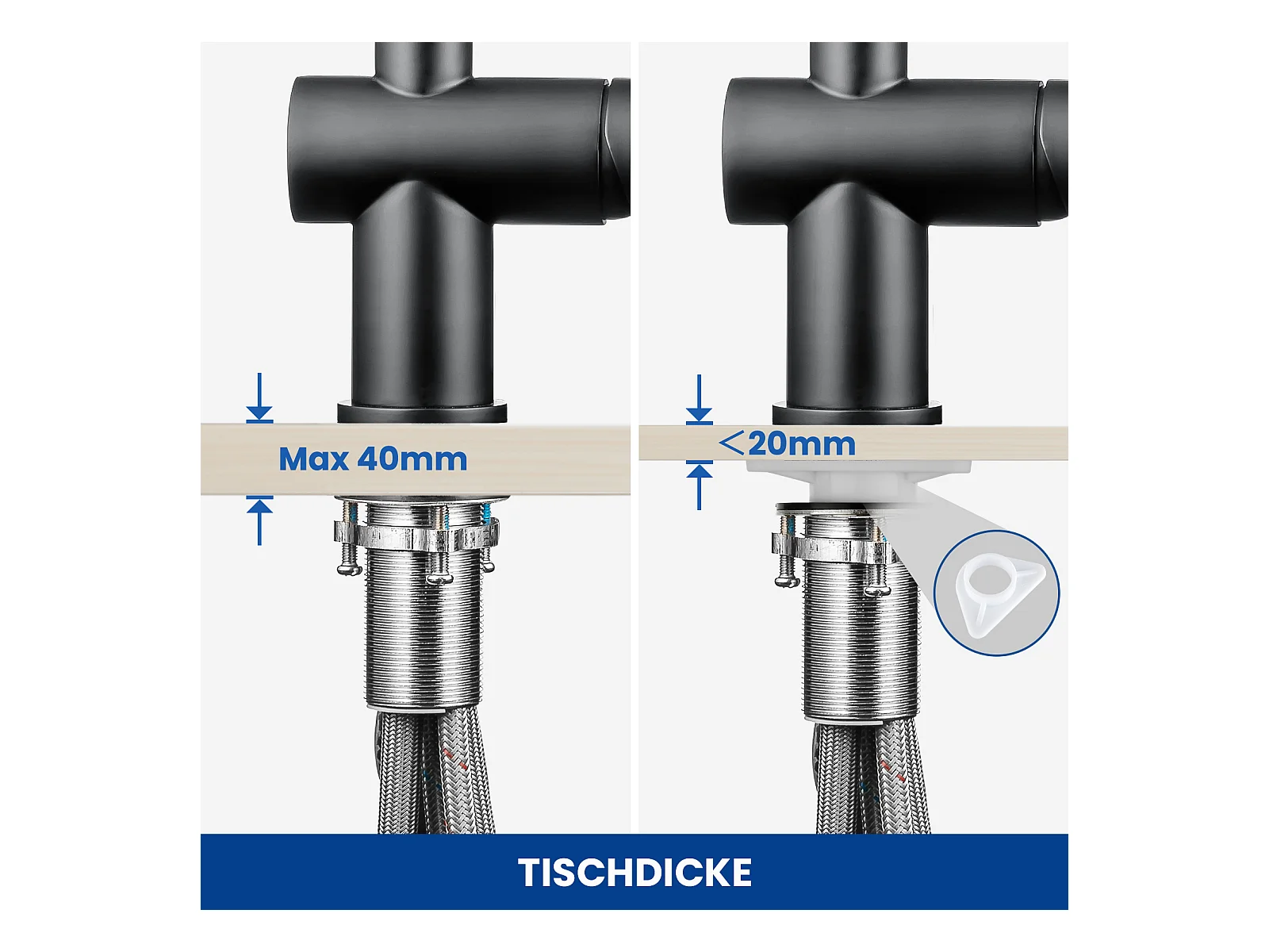 2PCS CECIPA MAX Keukenmengkraan met uittrekbare spray Keukenkraan met 2 watersproeitypes 360 ° draaibare wastafelkraan (zwart)