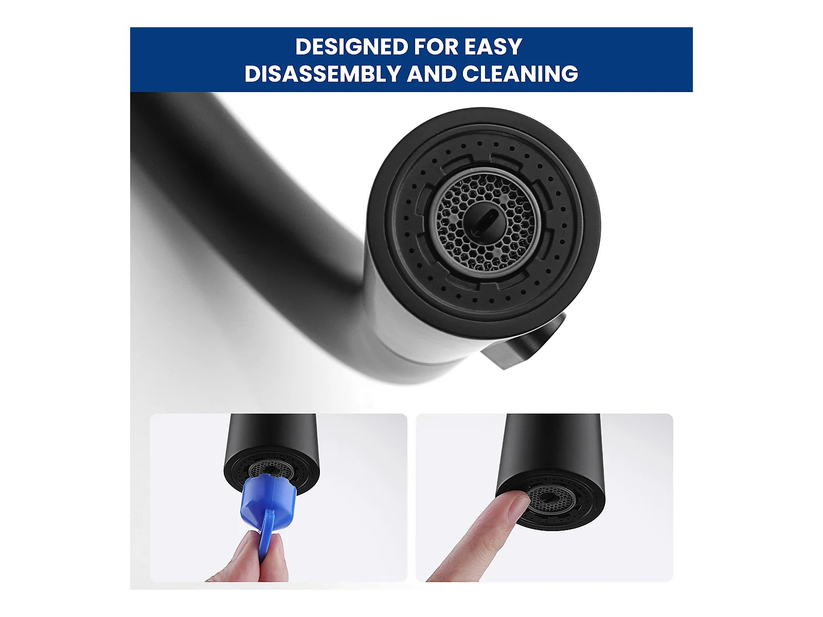 Zwarte keukenmengkraan met 3 waterstraalmodi, Cecipa max hoogwaardige wastafelkraan 360 draaibaar, mengkraan met uittrekbare spray, EU-model