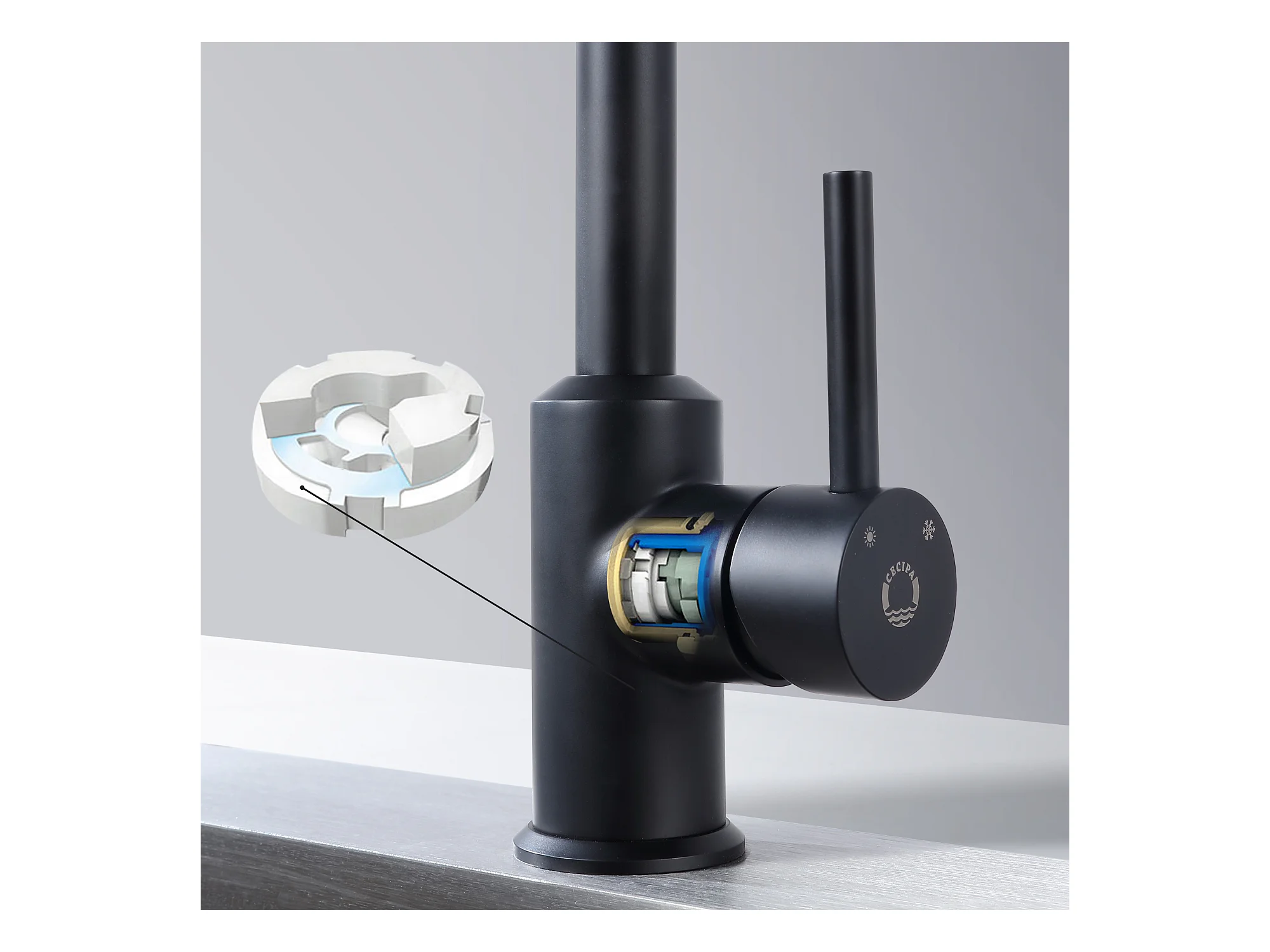 Cecipa max 2PCS keukenkraan 360° draaibare keukenmengkraan Koud en warm water wastafelmengkraan met afneembare bubbler, zwart, EU-model