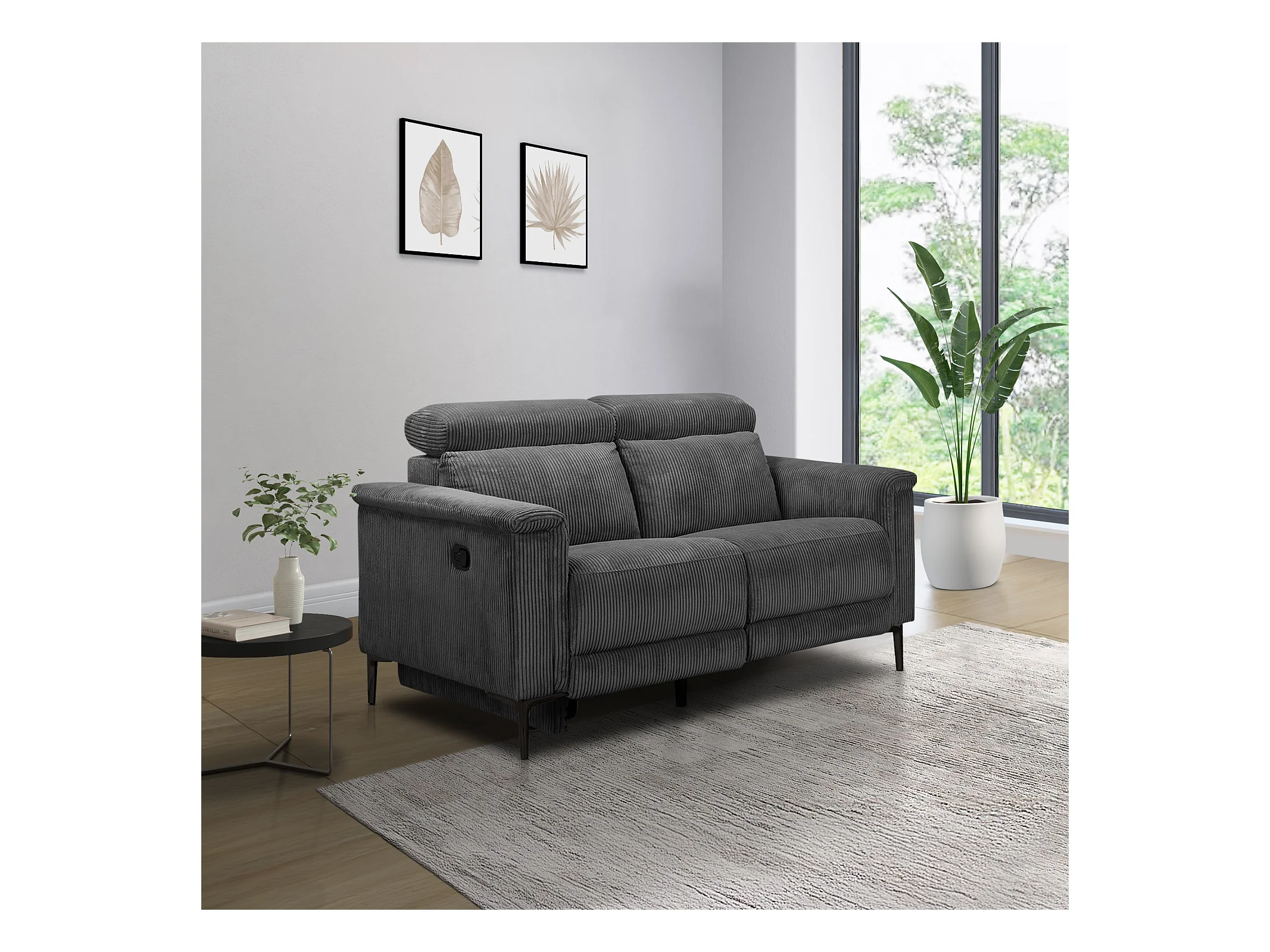 2Seater Sofa met 1 handmatige relaxfauteuil in corduroy antraciet