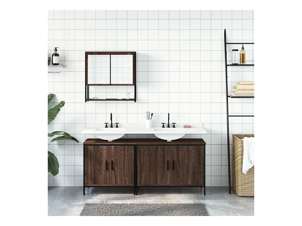 3-delige Badkamermeubelset bewerkt hout bruin eikenkleur BE132230