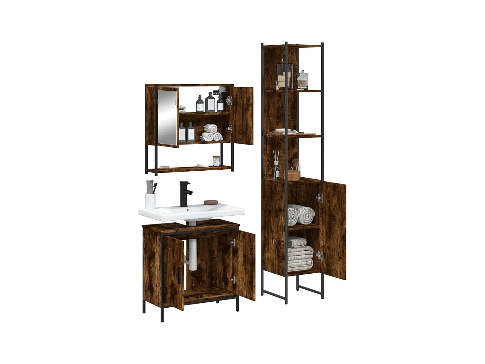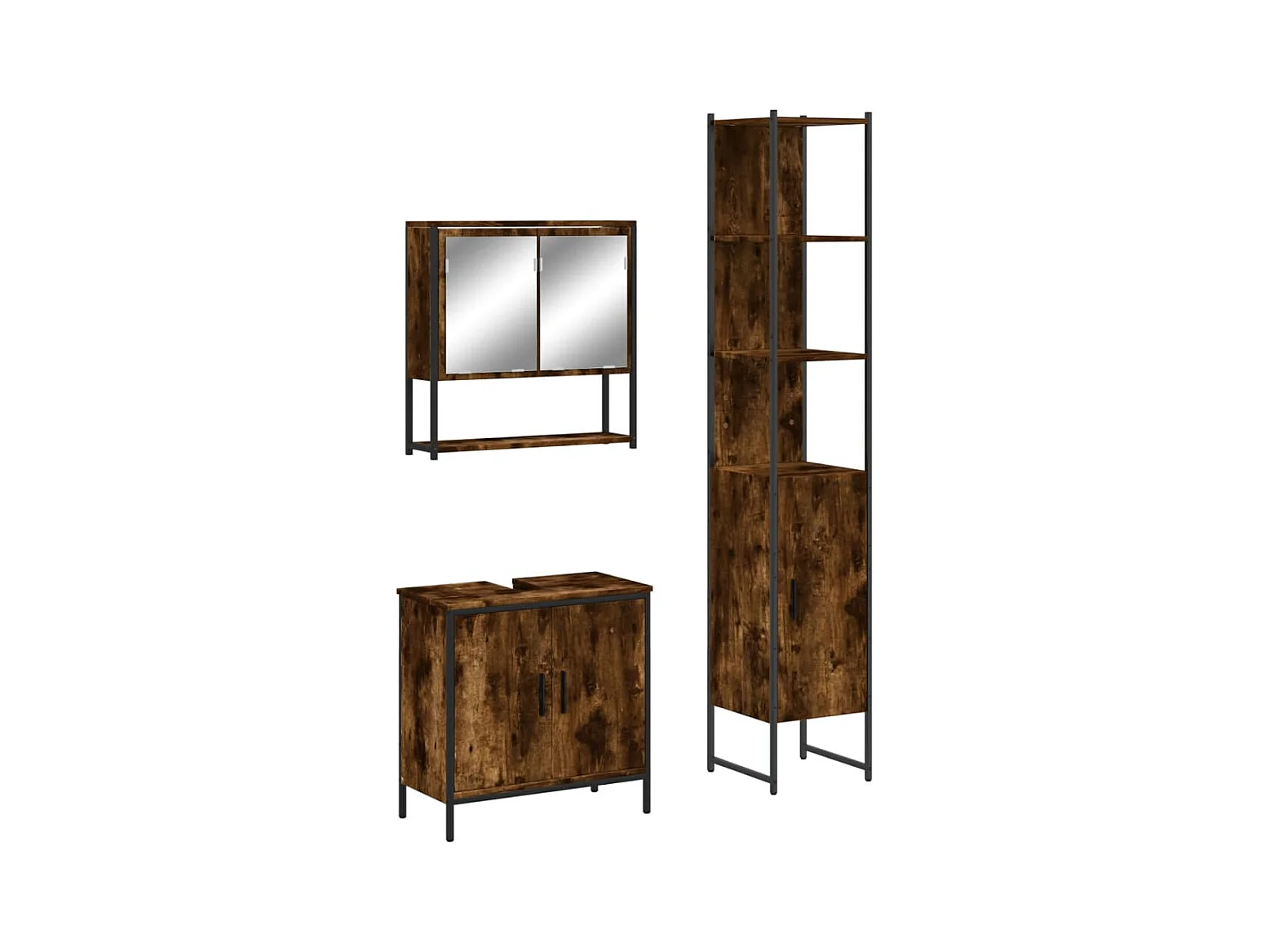 3-delige Badkamermeubelset bewerkt hout gerookt eikenkleurig BE835218