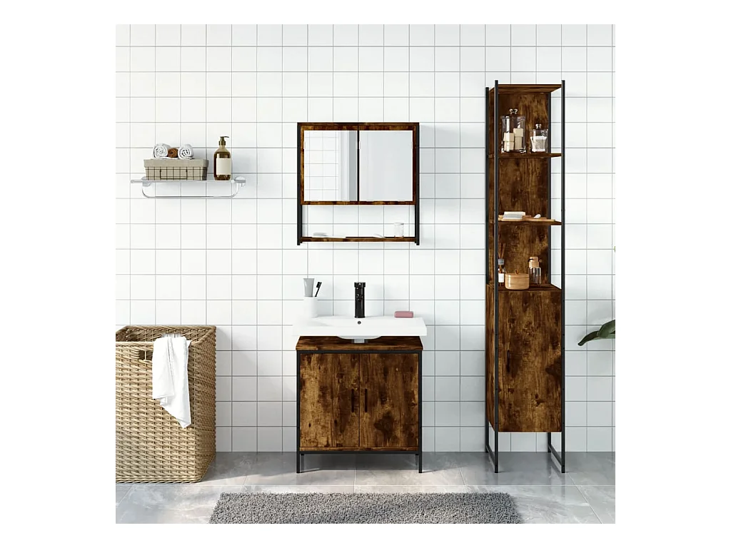 3-delige Badkamermeubelset bewerkt hout gerookt eikenkleurig BE552773