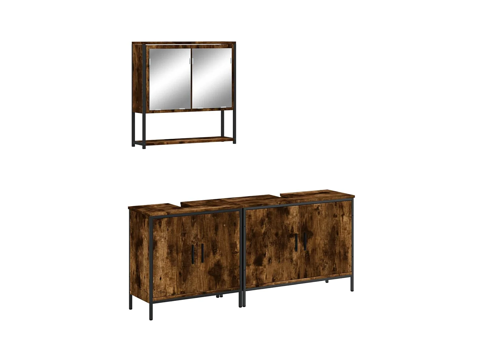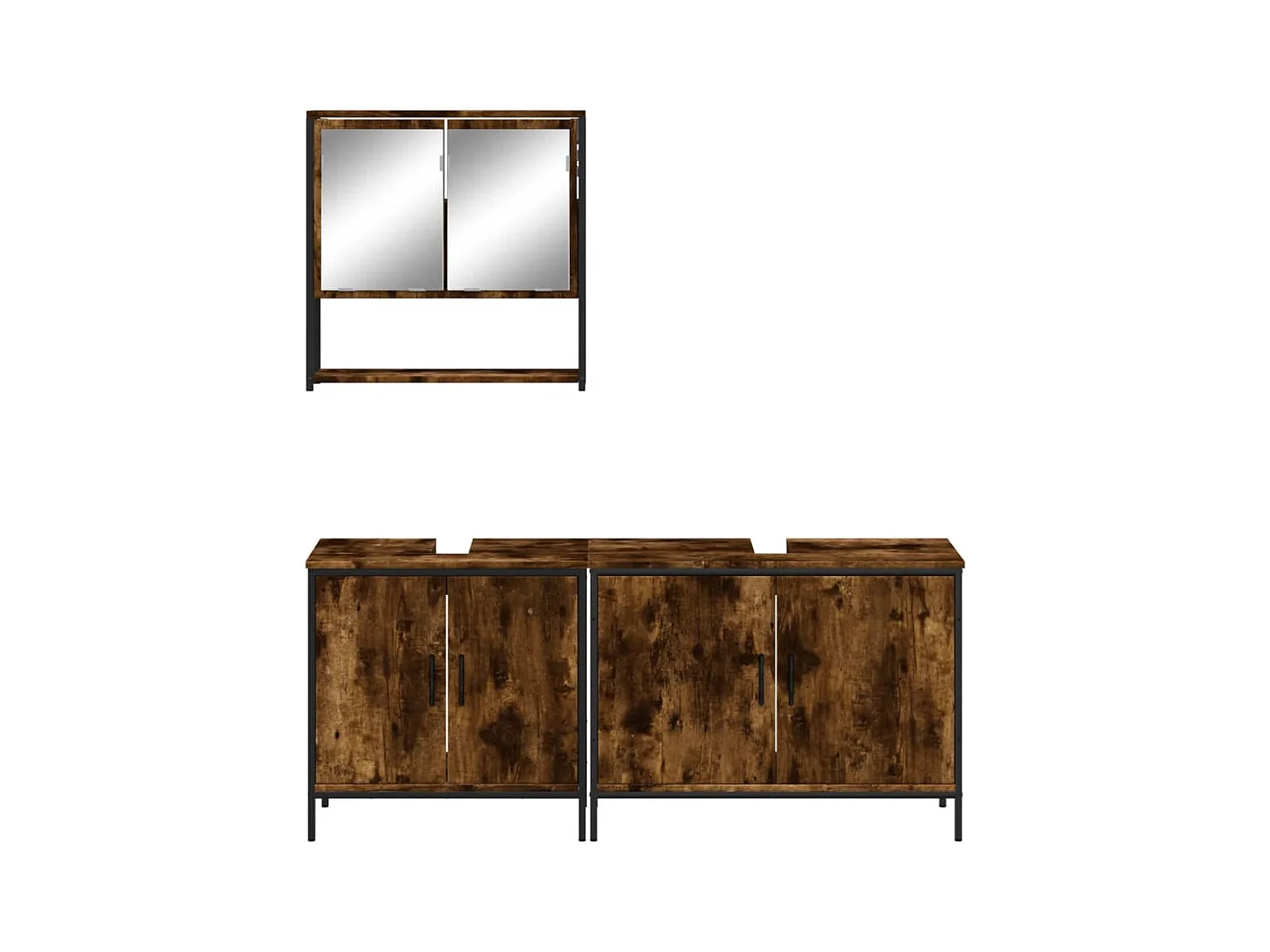3-delige Badkamermeubelset bewerkt hout gerookt eikenkleurig BE721903