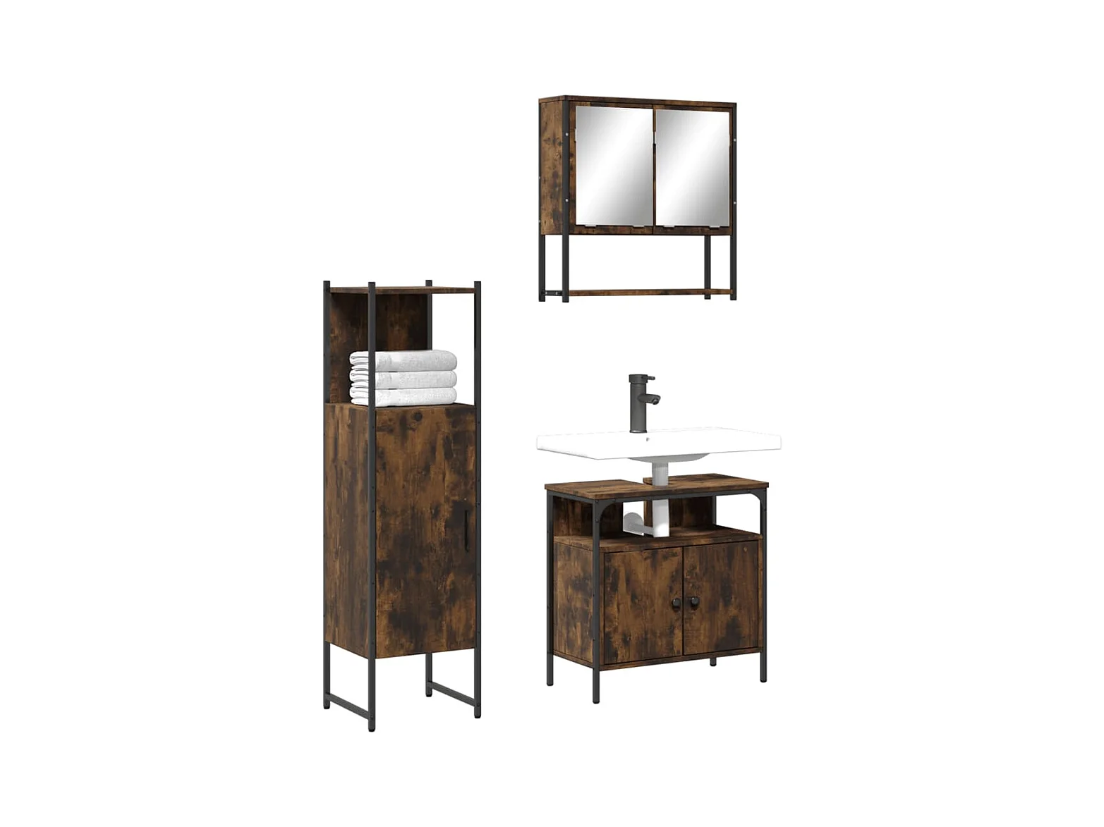 3-delige Badkamermeubelset bewerkt hout gerookt eikenkleurig BE835218