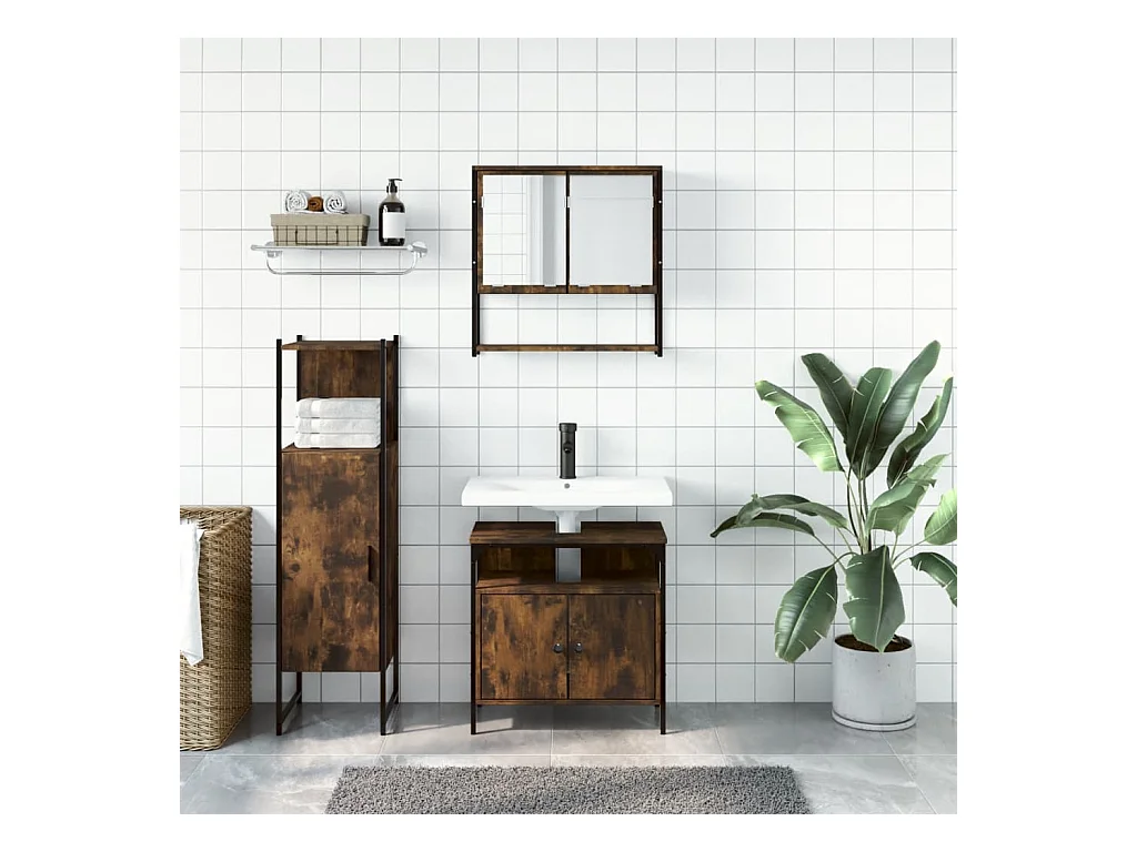 3-delige Badkamermeubelset bewerkt hout gerookt eikenkleurig BE552773