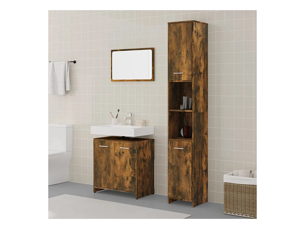 3-delige Badkamermeubelset bewerkt hout gerookt eikenkleurig BE552773