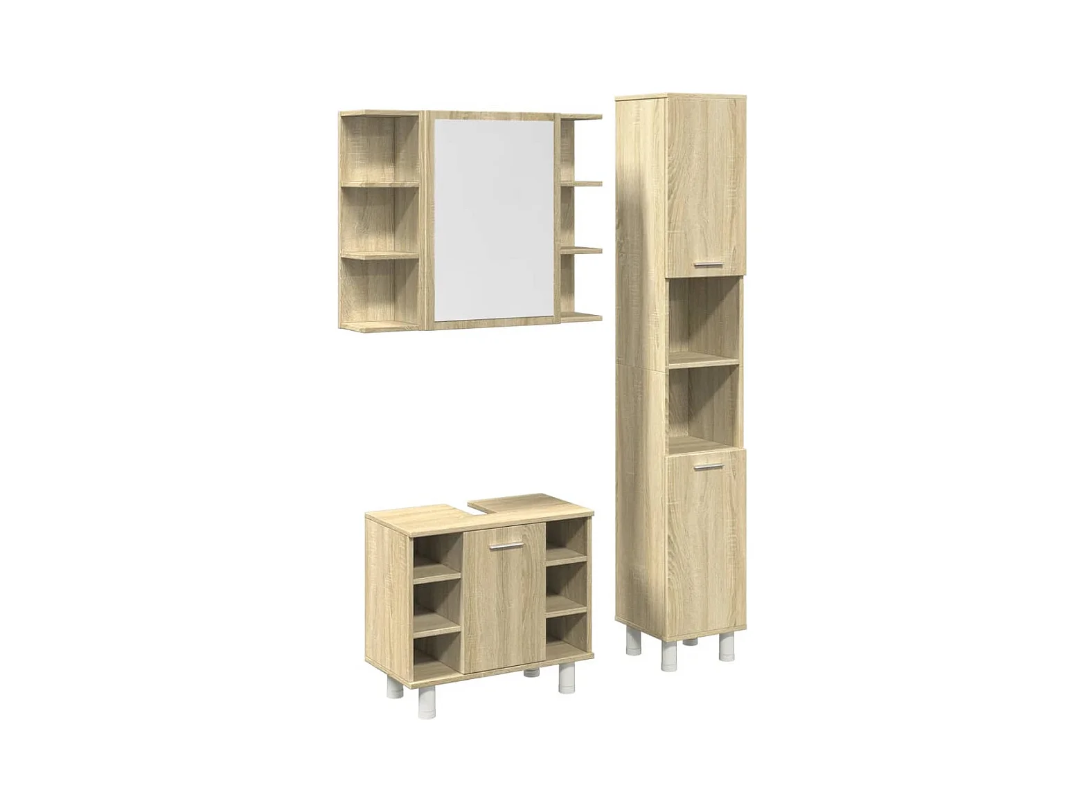 3-delige Badkamermeubelset bewerkt hout sonoma eikenkleurig
