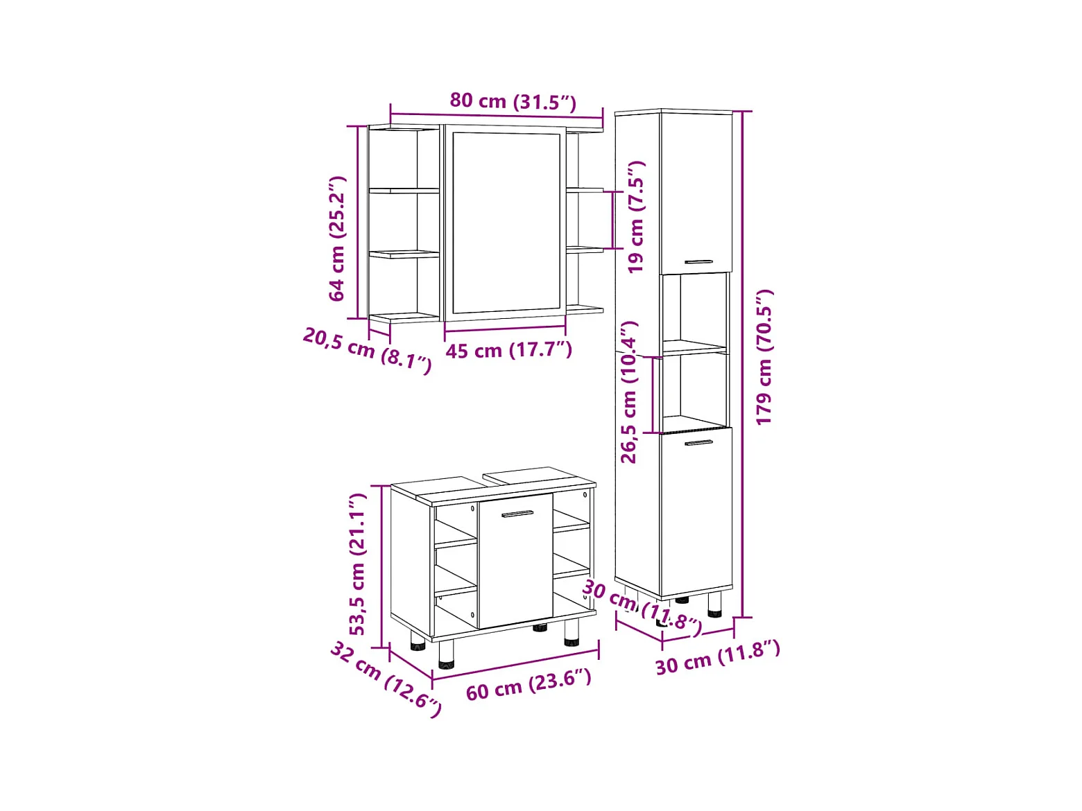 3-delige Badkamermeubelset bewerkt hout gerookt eikenkleurig