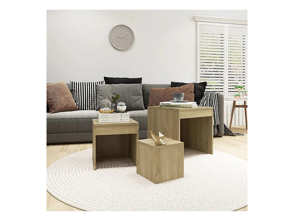 3-delige bijzettafels Sonoma Eiken Spaanplaat