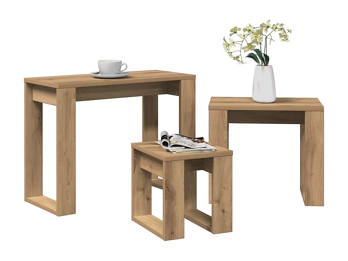 3-delige Bijzettafelset bewerkt hout artisanaal eikenkleur