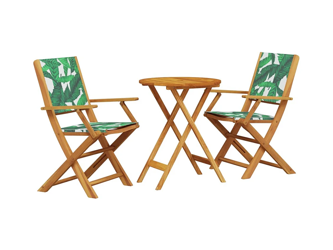 3-delige Bistroset bladpatroon stof en massief hout BE257628