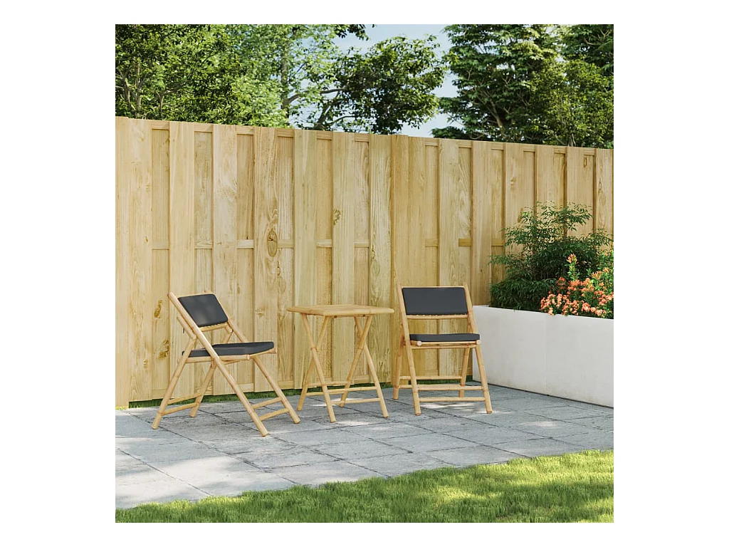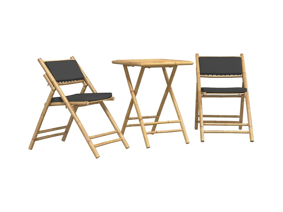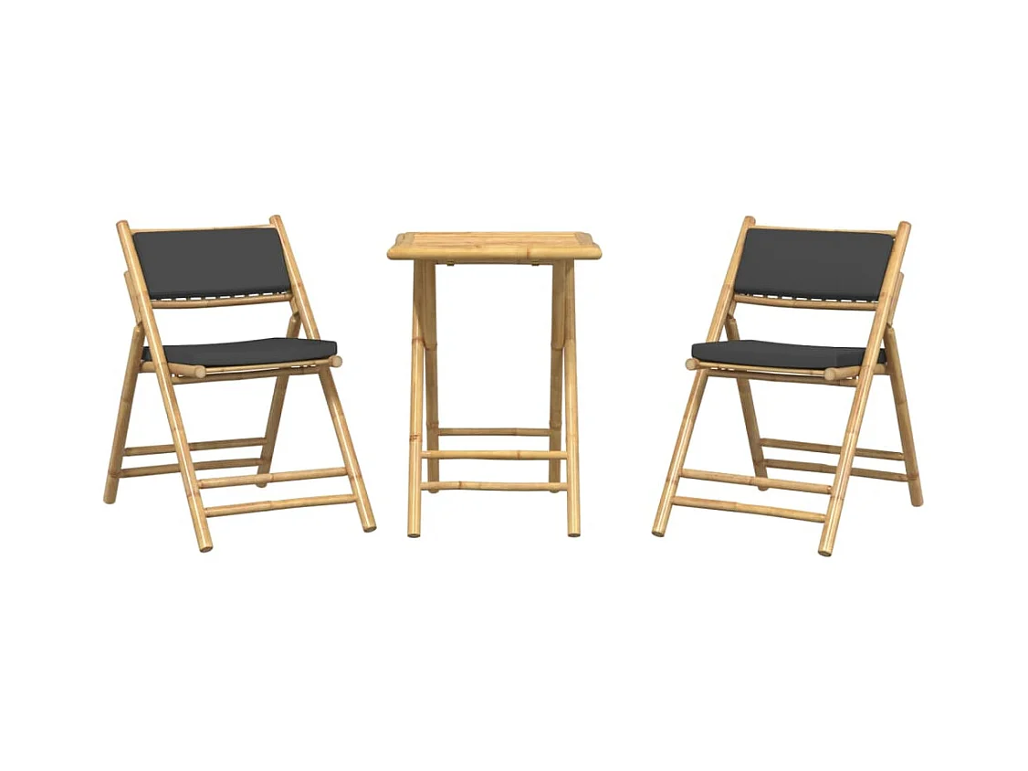 3-delige Bistroset inklapbaar met kussens bamboe donkergrijs
