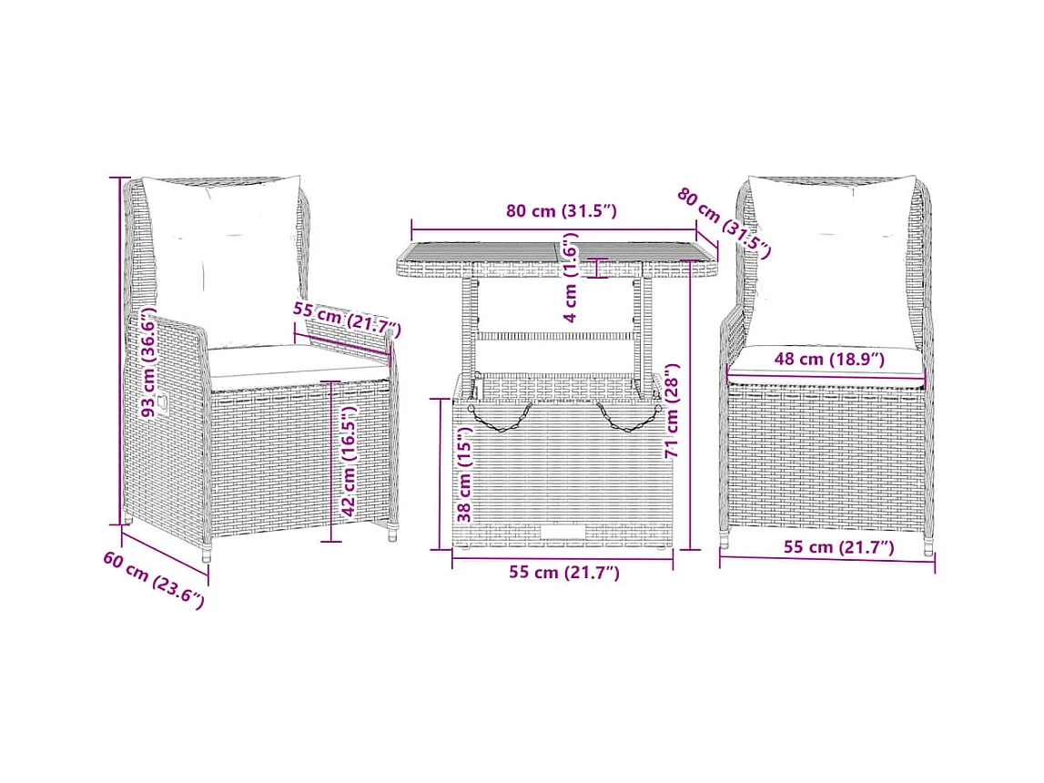 3-delige Tuinbankstel met kussens L-vormig poly rattan grijs