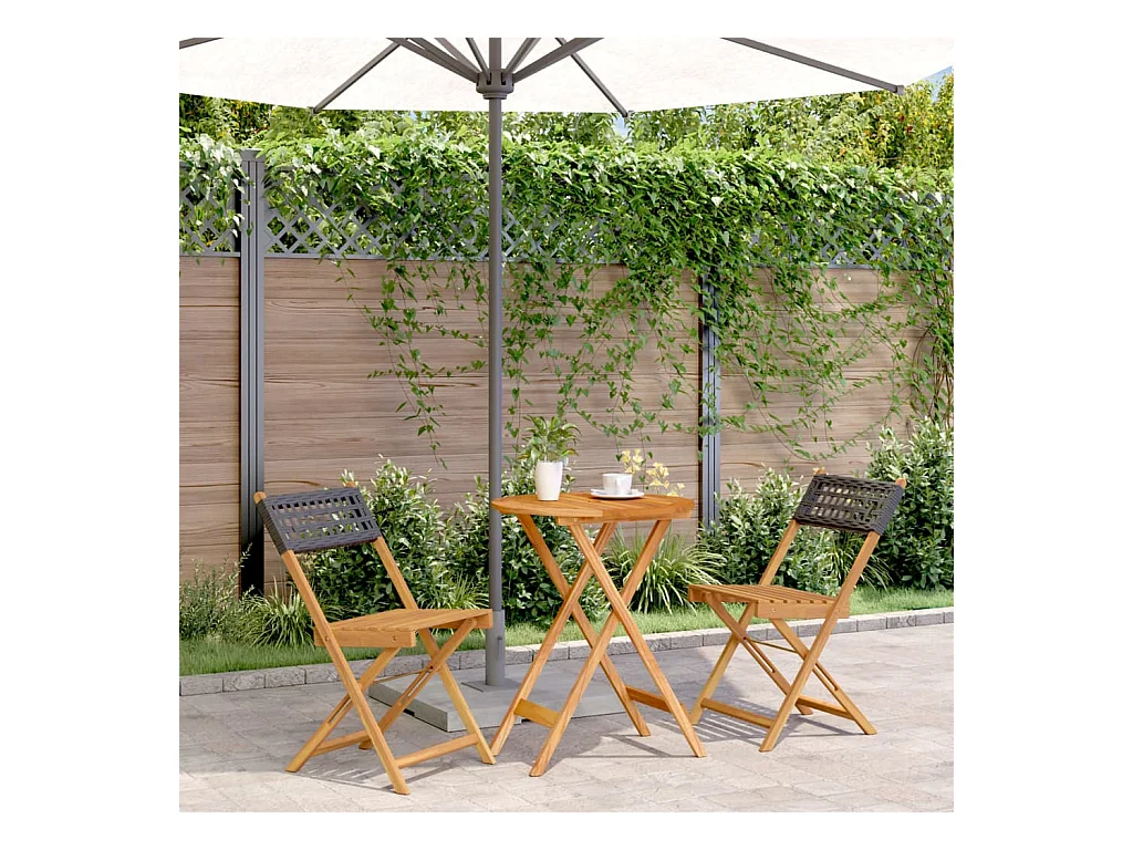 3-delige Bistroset poly rattan en massief acaciahout zwart BE254979