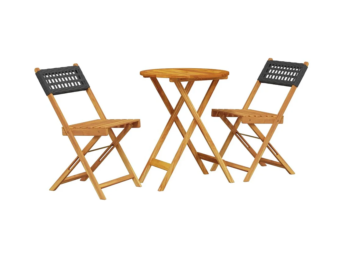 3-delige Bistroset poly rattan en massief hout zwart BE996459