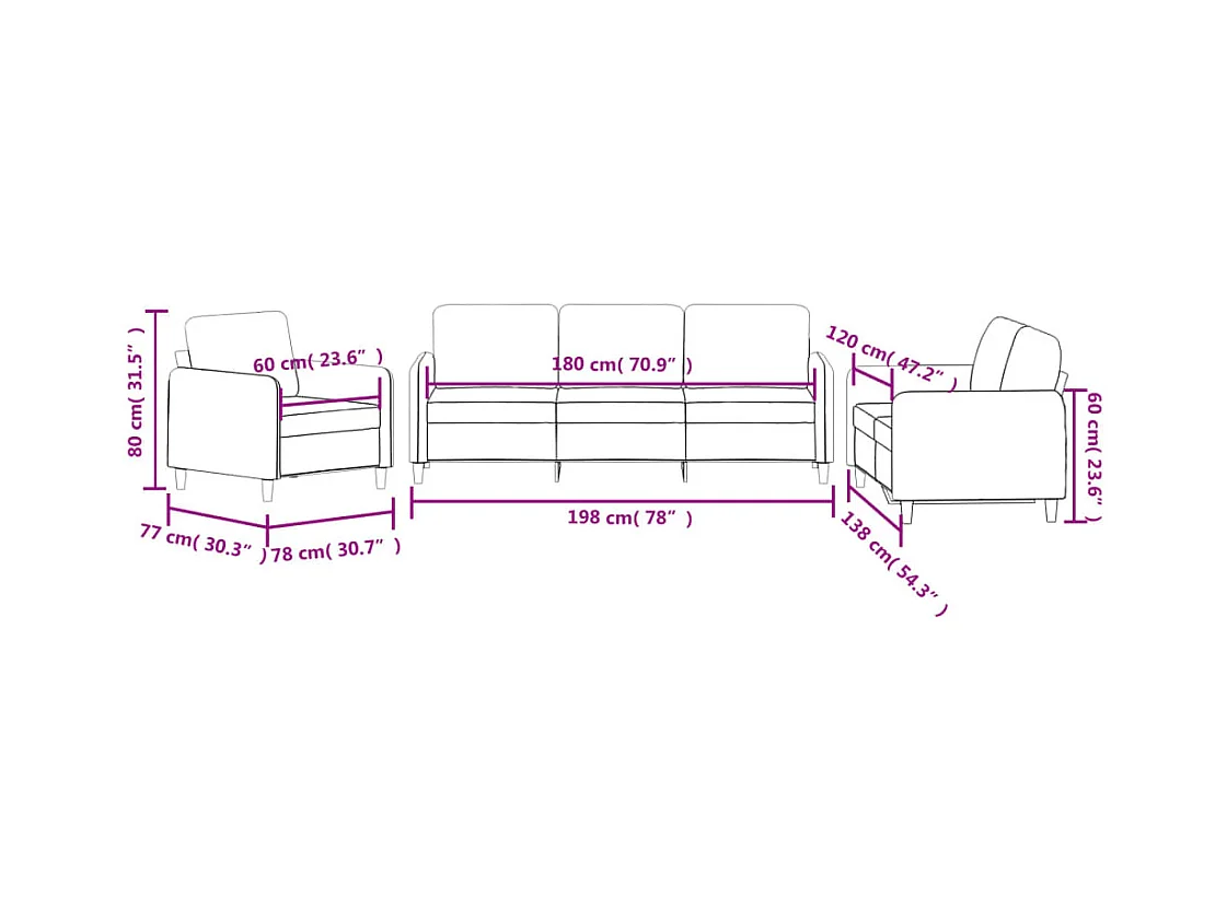 3-delige Loungeset met kussens fluweel lichtgrijs