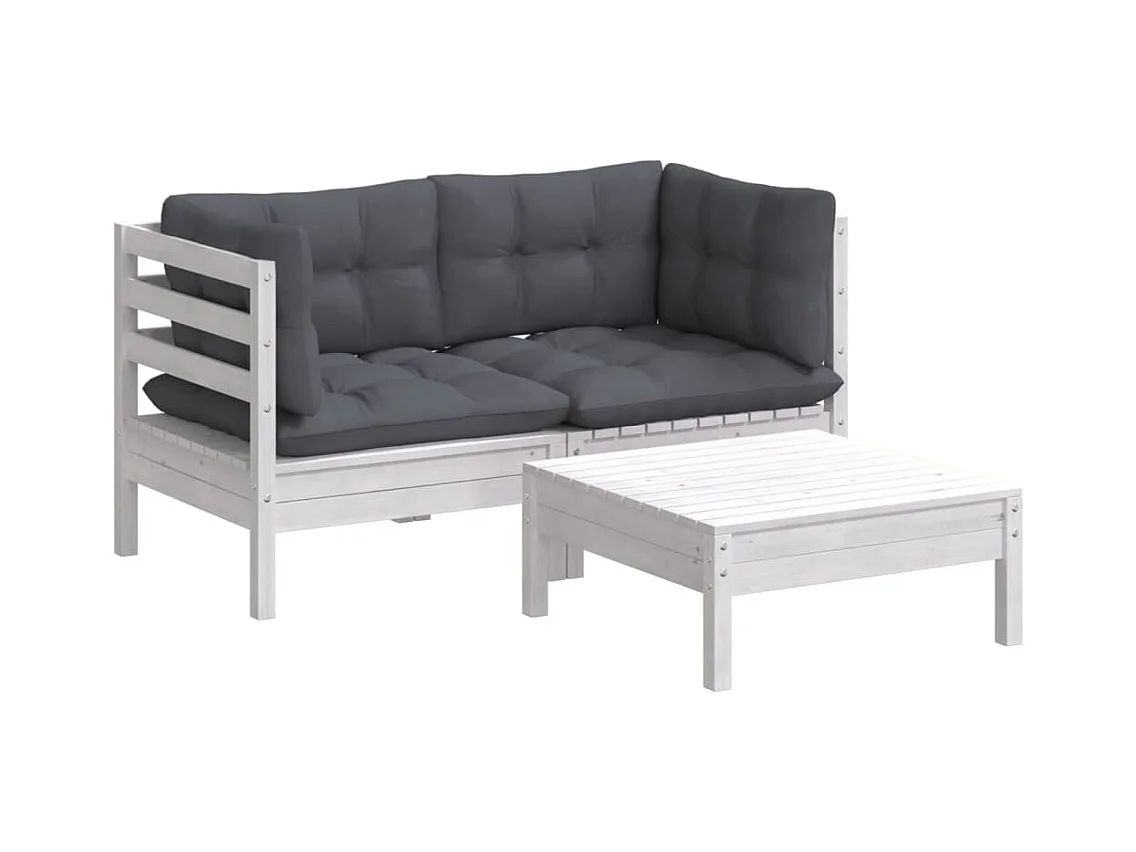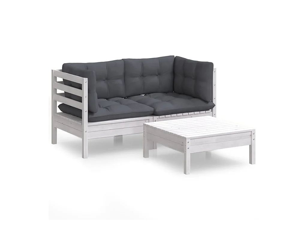 3-delige Loungeset met antracietkleurige kussens grenenhout