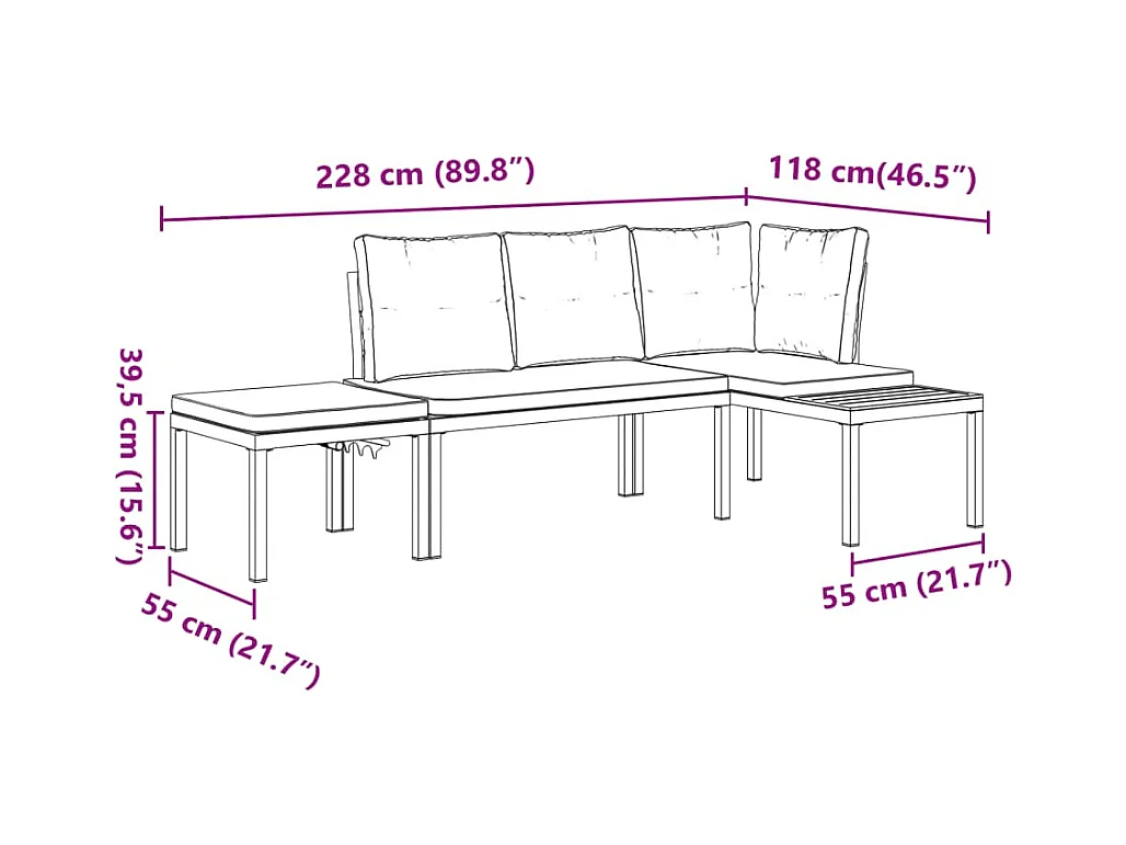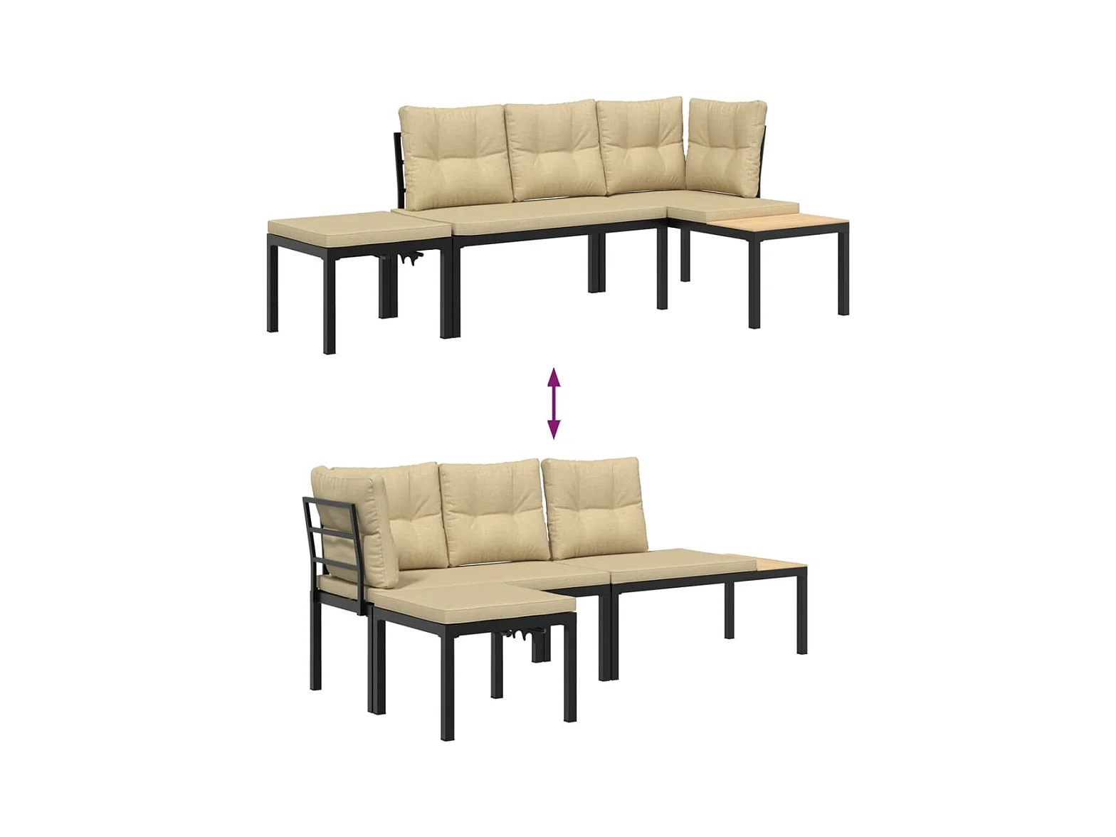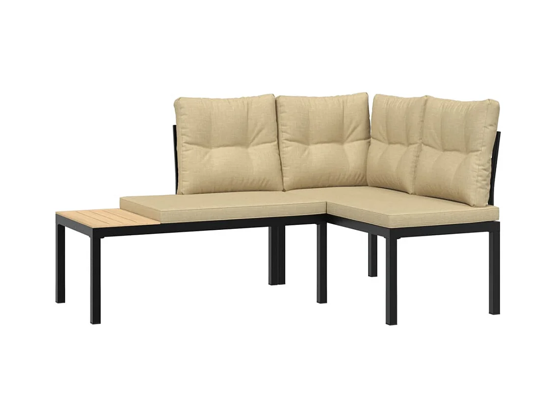 3-delige Loungeset met kussens gepoedercoat staal zwart