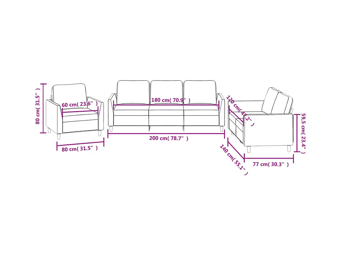 3-delige Loungeset met kussens kunstleer cappuccinokleurig