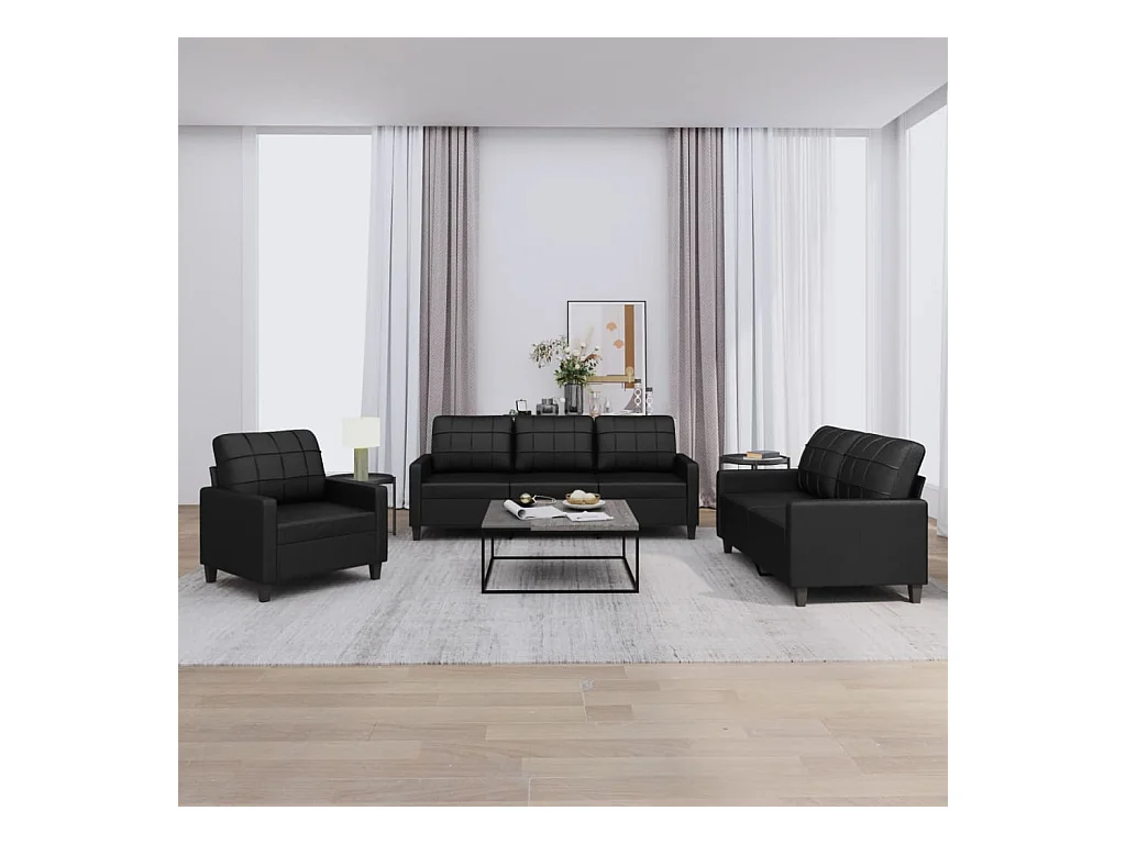 3-delige Loungeset Chesterfield-stijl kunstleer zwart