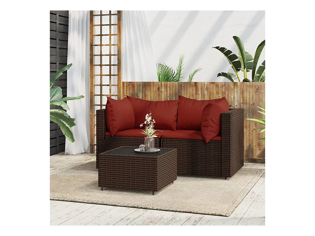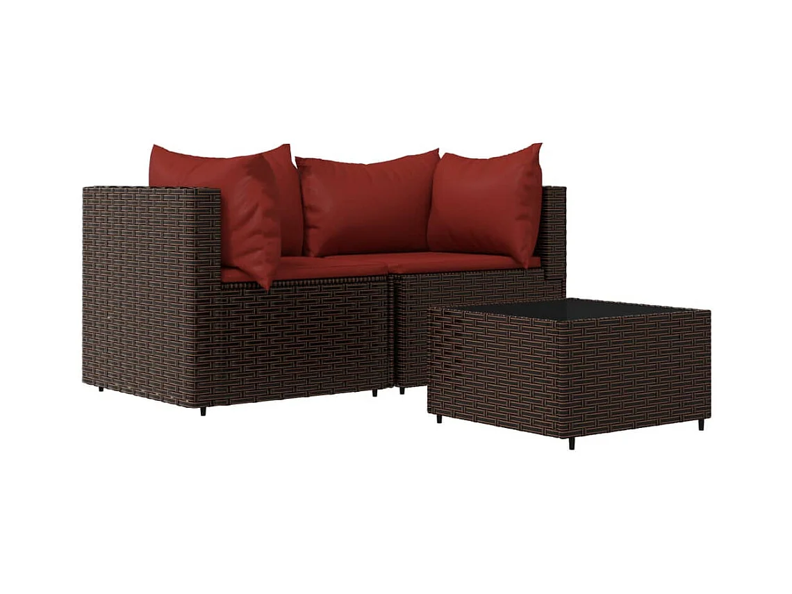 3-delige Loungeset met kussens poly rattan bruin NL144736