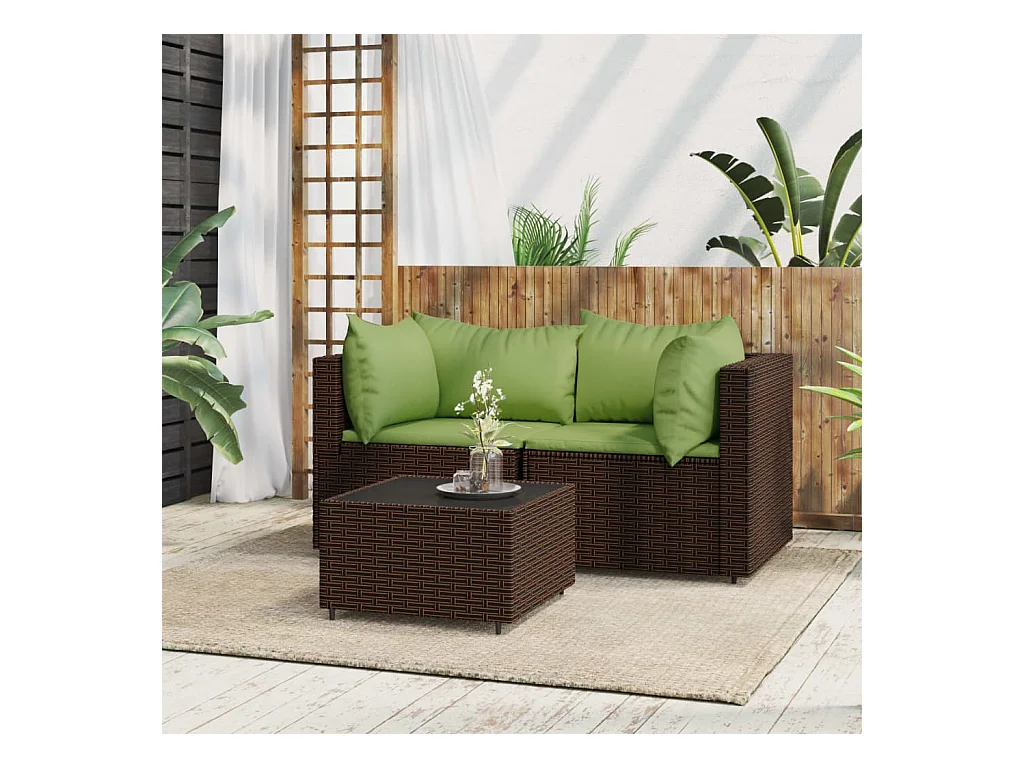 3-delige Loungeset met kussens poly rattan bruin NL144736