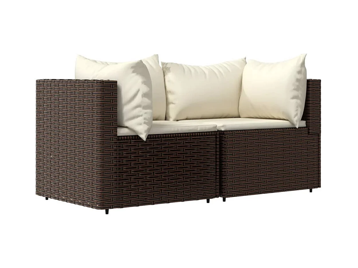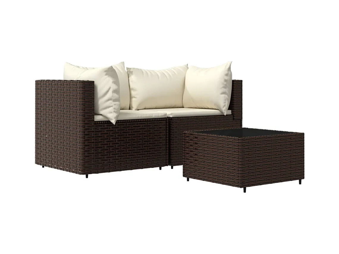 3-delige Loungeset met kussens poly rattan bruin NL144736