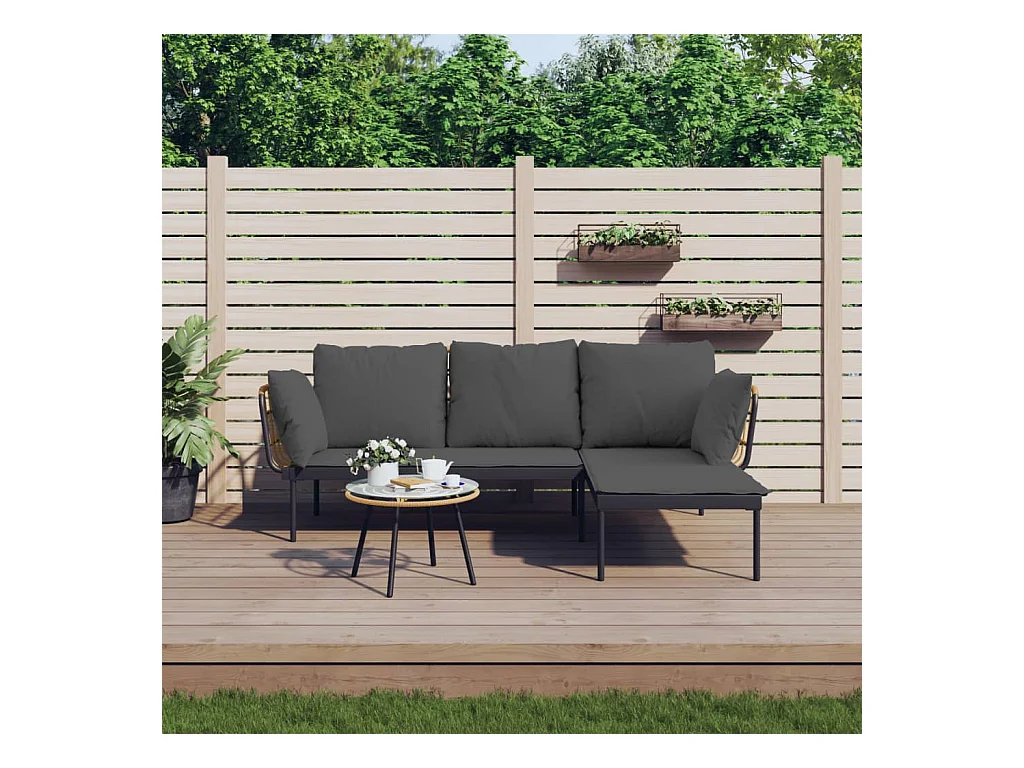 3-delige Loungeset met kussens staal antracietkleurig NL33809