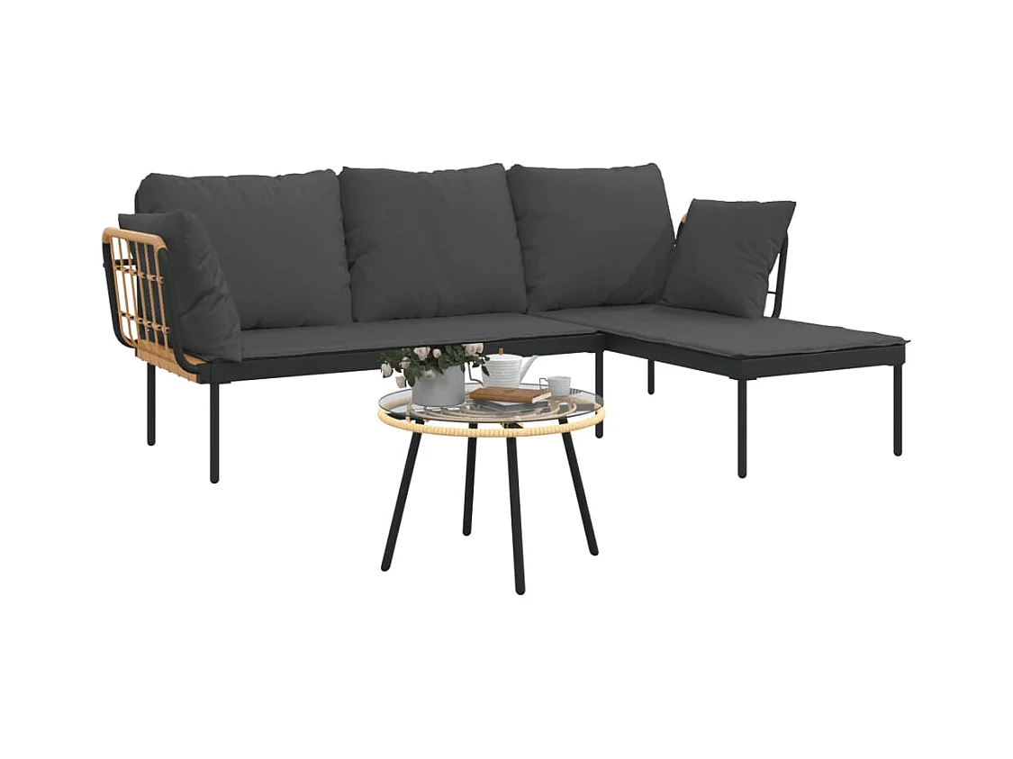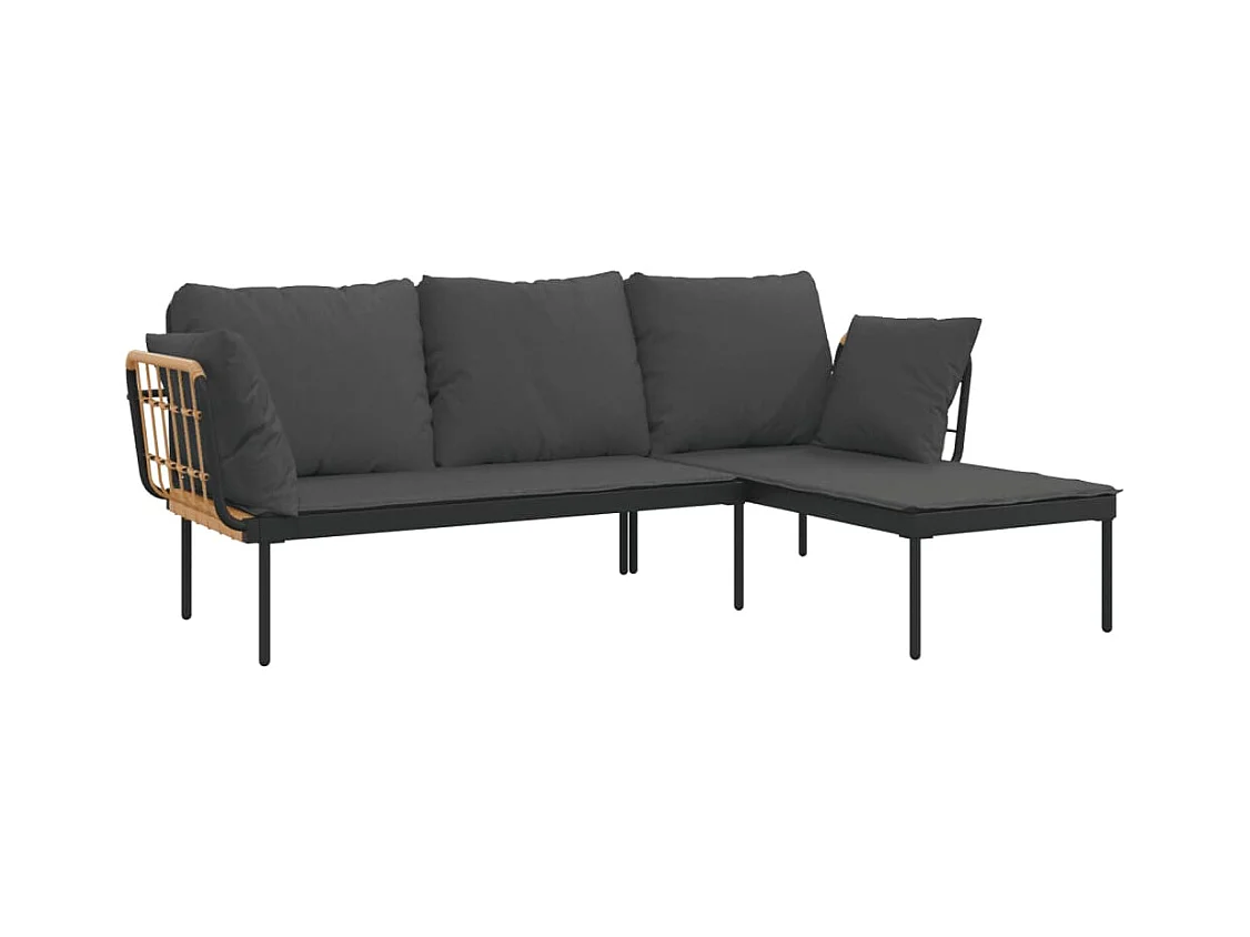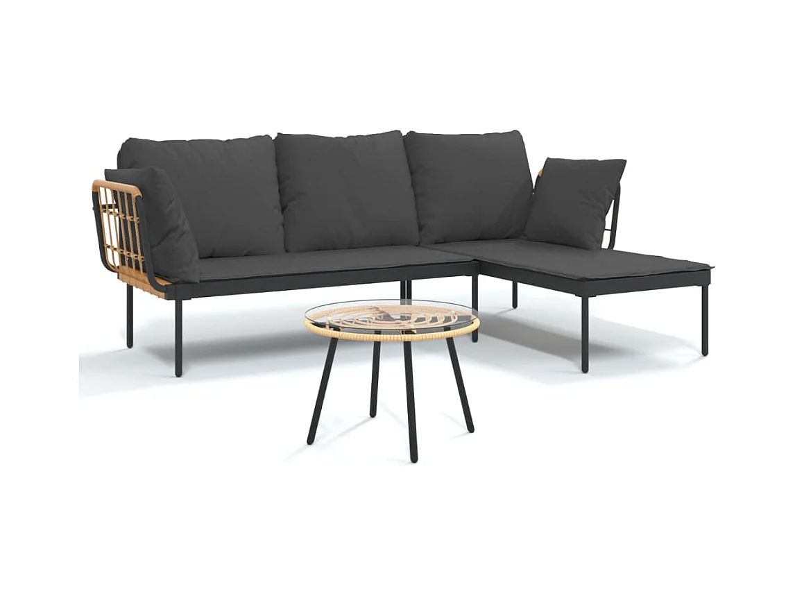 3-delige Loungeset met kussens poly rattan donkergrijs NL86717