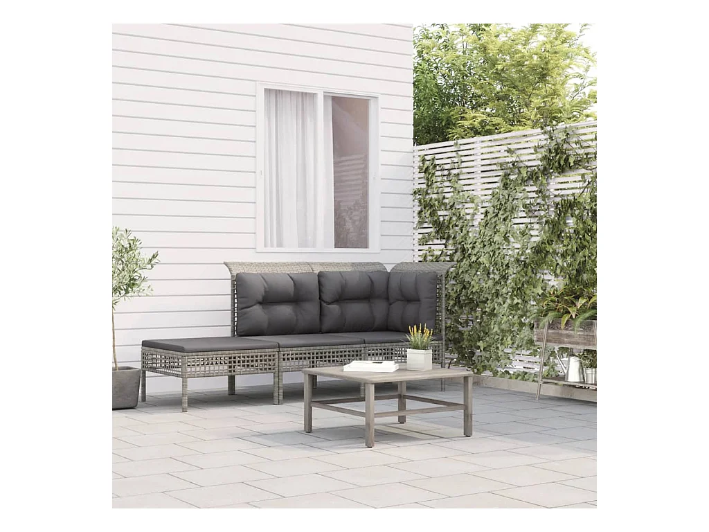 3-delige Loungeset met kussens poly rattan grijs NL85233