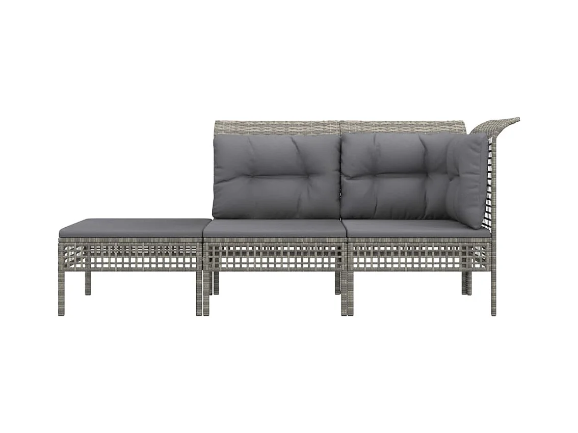 3-delige Loungeset met kussens poly rattan grijs NL16694