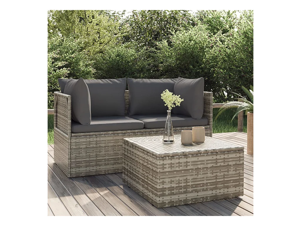 3-delige Loungeset met kussens poly rattan grijs NL354089