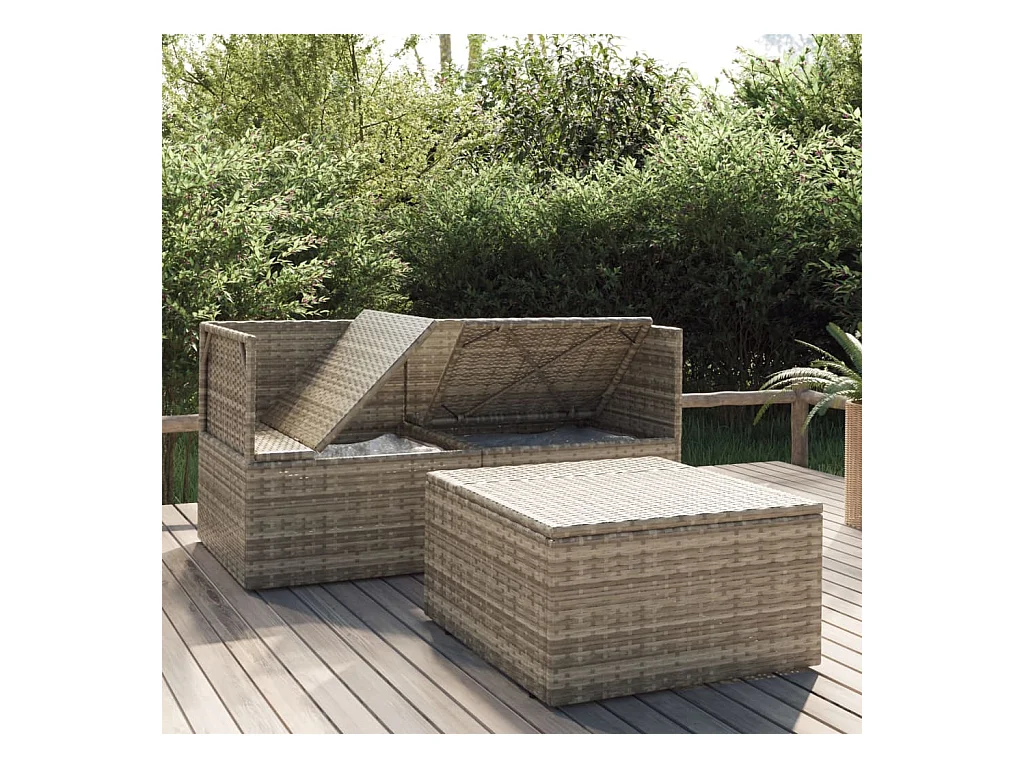 Tuinmiddenbank met kussens 2 st poly rattan grijs NL628772